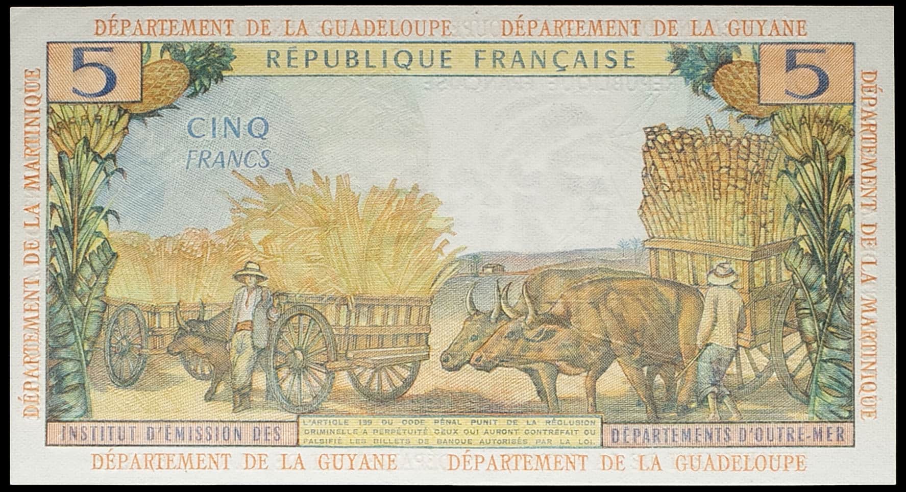 - FRENCH ANTILLES 5 francs type “Pointe-à-Pitre” ND (1966).