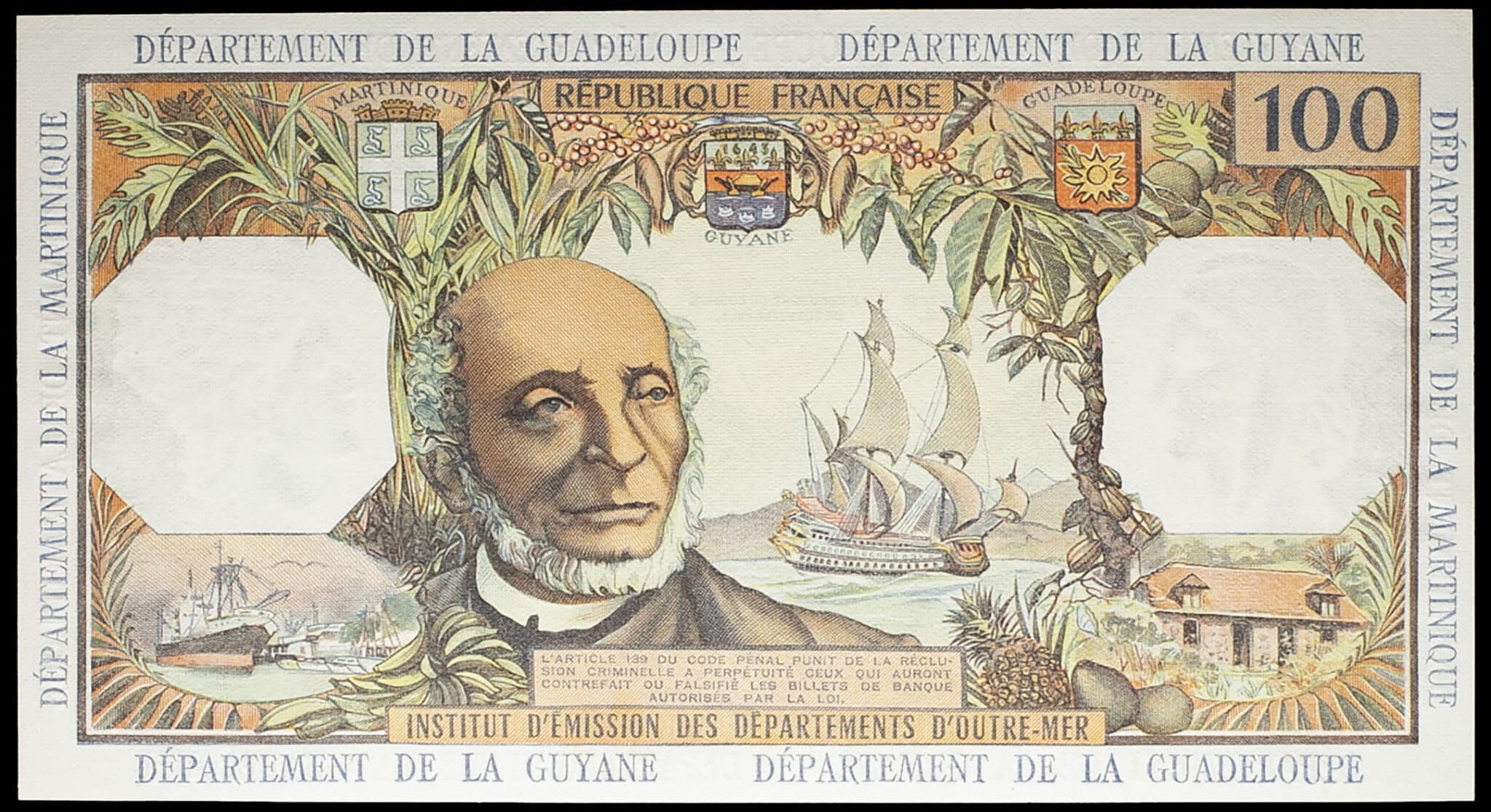 - FRENCH ANTILLES 100 francs type “Victor Schœlcher” ND (1967).