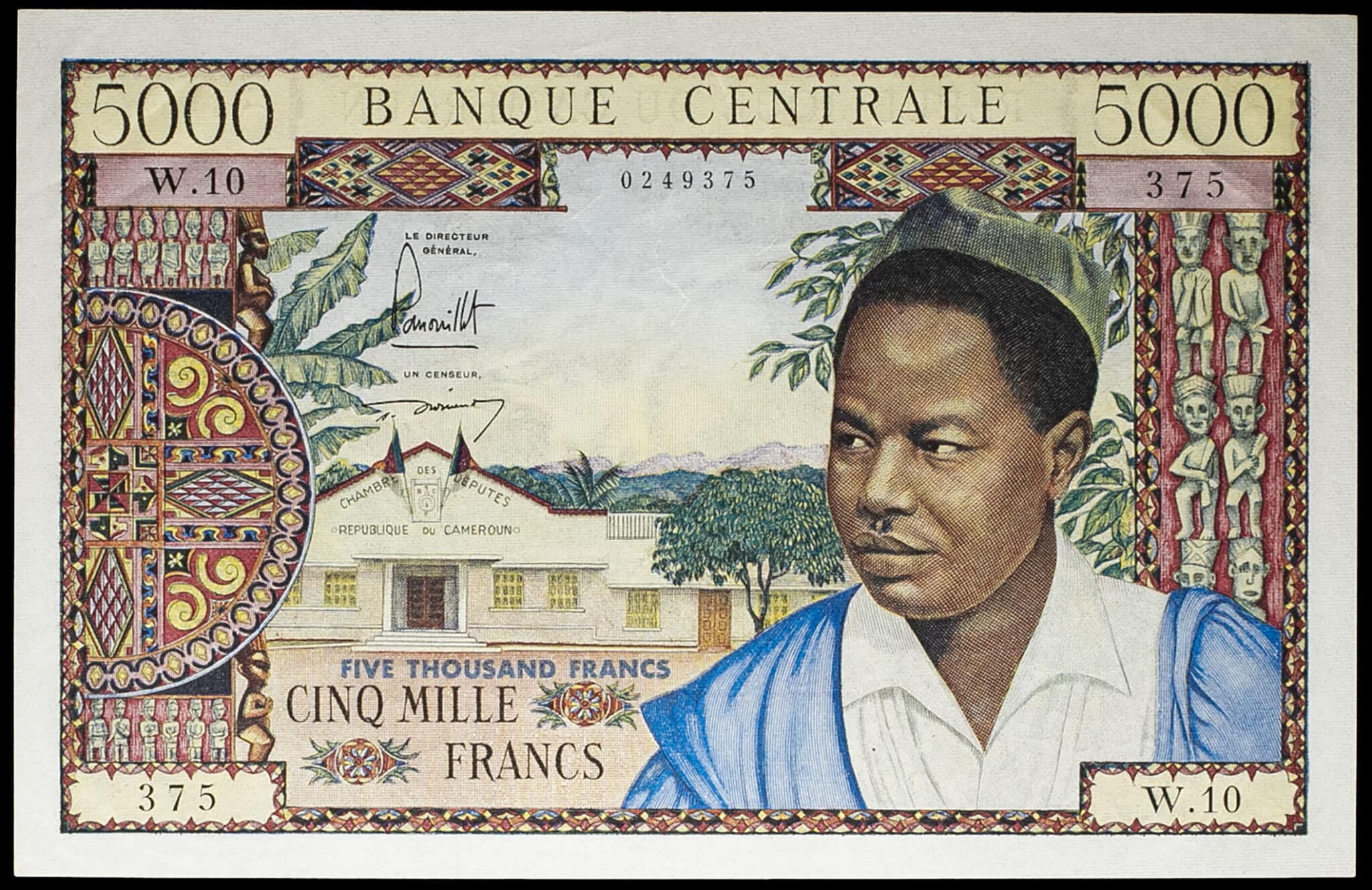 - CAMEROON 5000 francs avec le portrait du président Ahmadou Ahidjo, type modifié ND (1961).