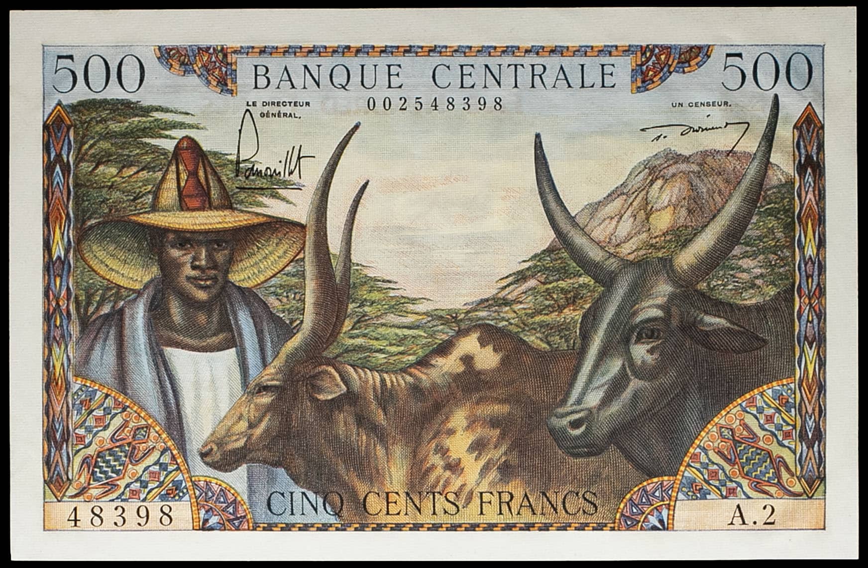 - CAMEROON 500 francs type “élevage bovin” ND (1961).