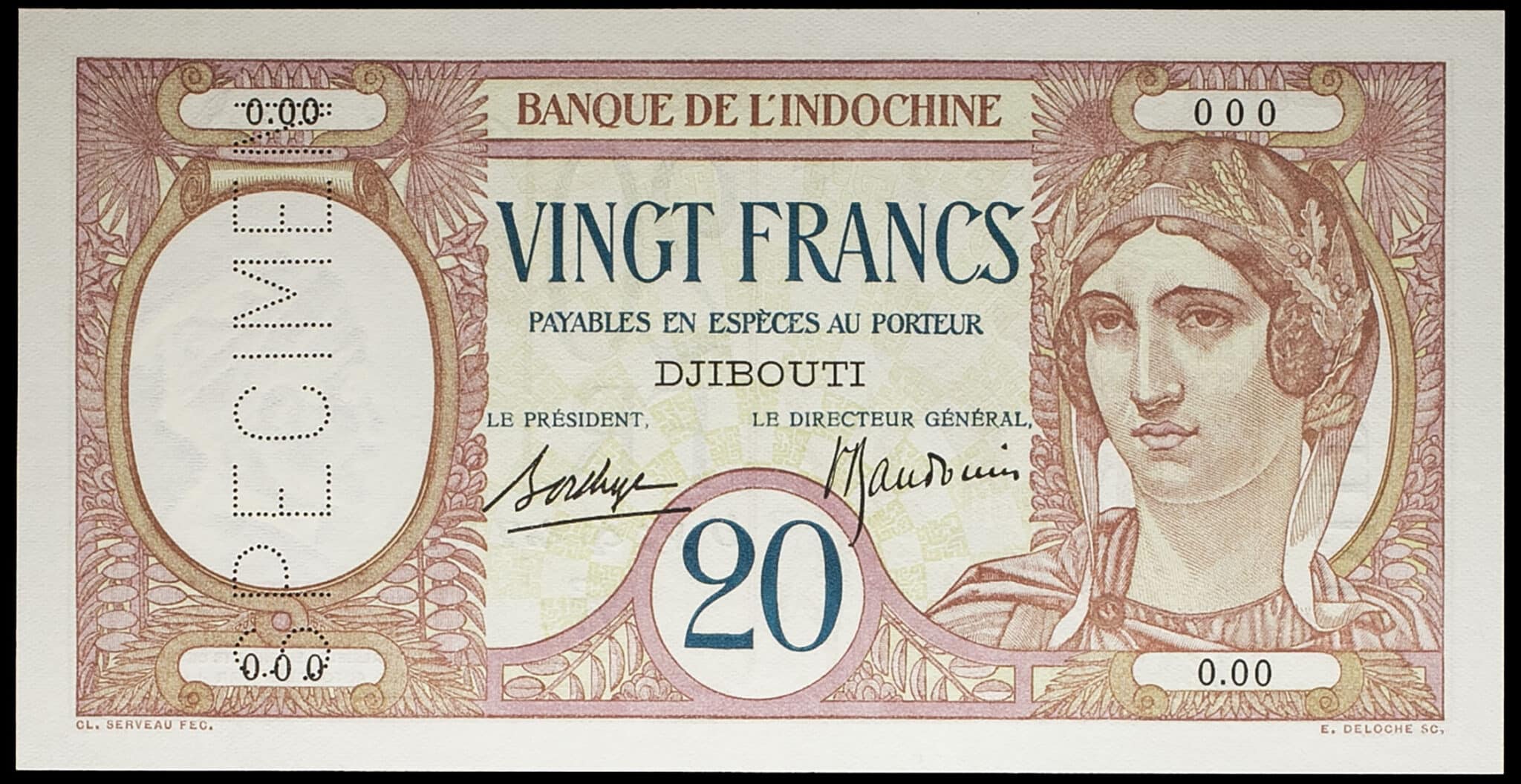 - 20 francs type “paon” (SPÉCIMEN) - Banque de l’Indochine ND (1936).