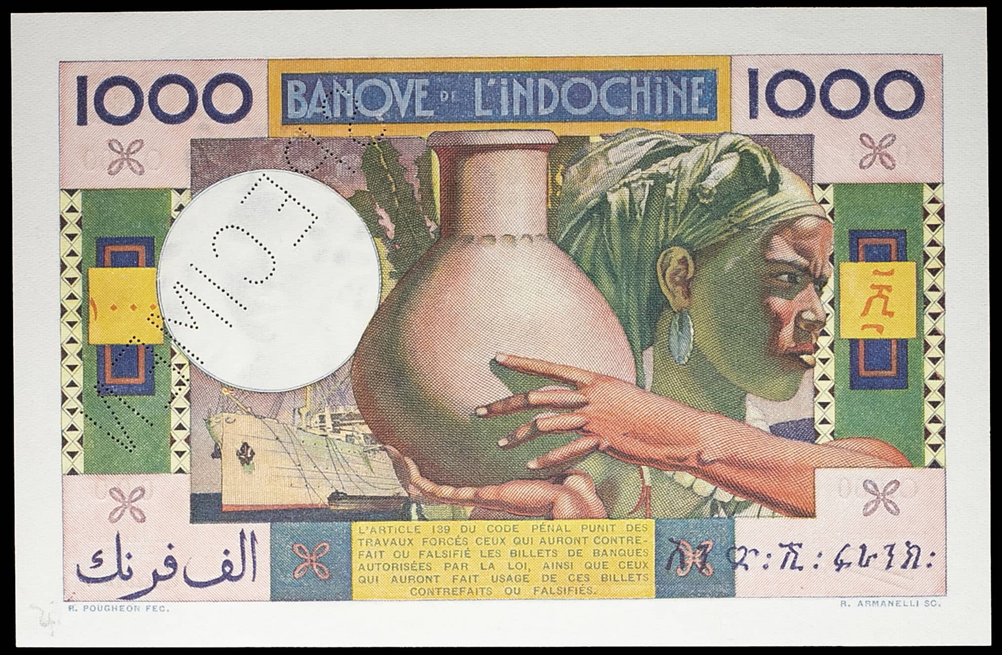 - 1000 francs type “femme à la jarre” (SPÉCIMEN) - Banque de l’Indochine ND (1947).
