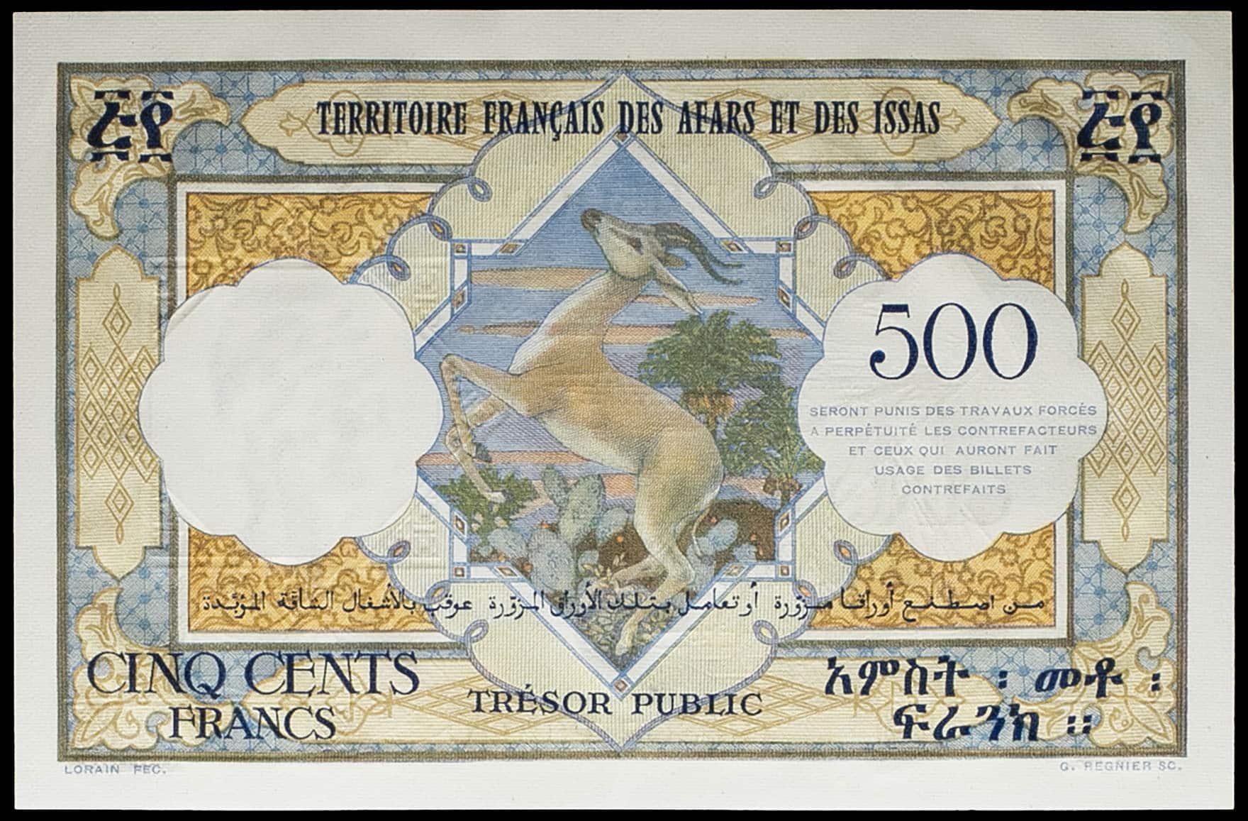 - 500 francs type “rade de Djibouti” - Territoire Français des Afars et des Issas (Trésor Public) ND (1973).