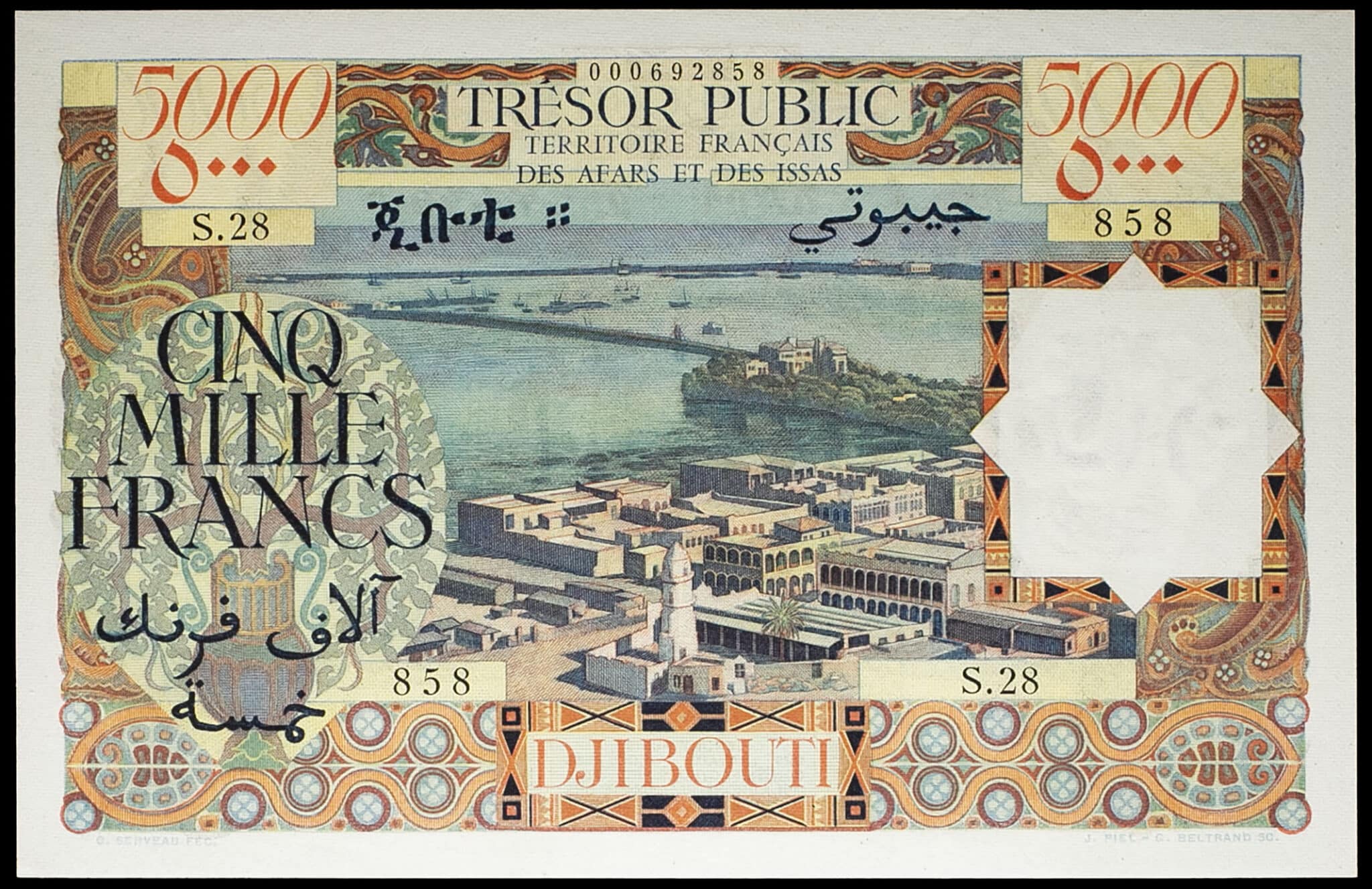 - 5000 francs type “port de Djibouti” - Territoire Français des Afars et des Issas (Trésor Public) ND (1969).
