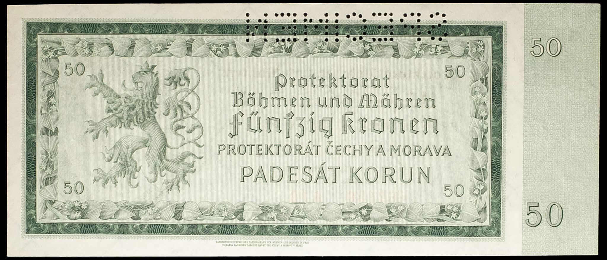- BOHEMIA AND MORAVIA 50 korun (SPÉCIMEN) 12 septembre 1940.