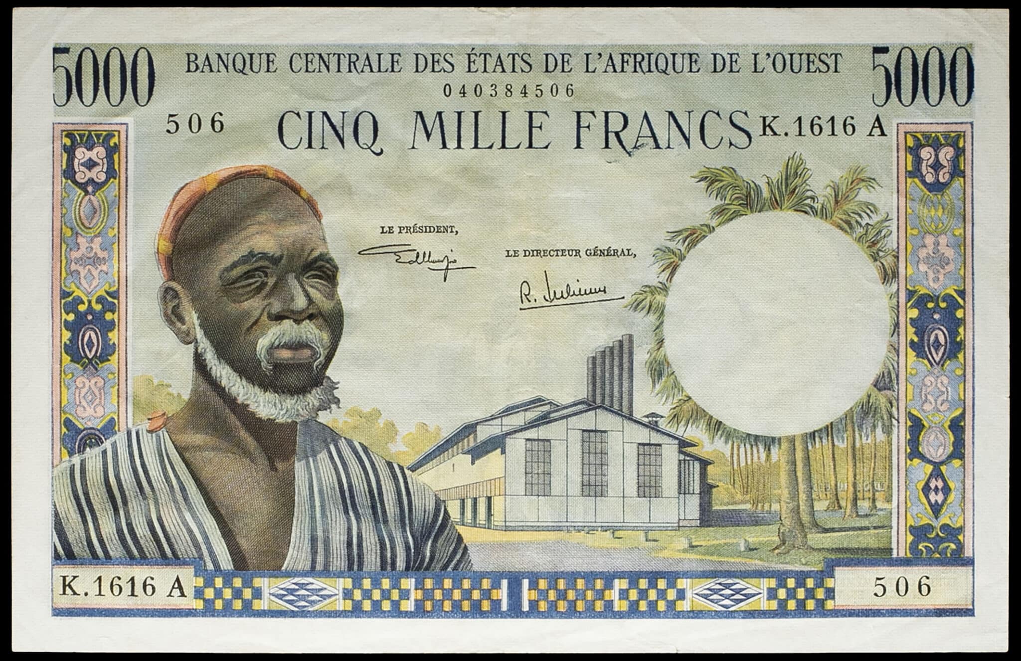 - WEST AFRICAN STATES 5000 francs - A (Côte d’Ivoire) ND (1973).