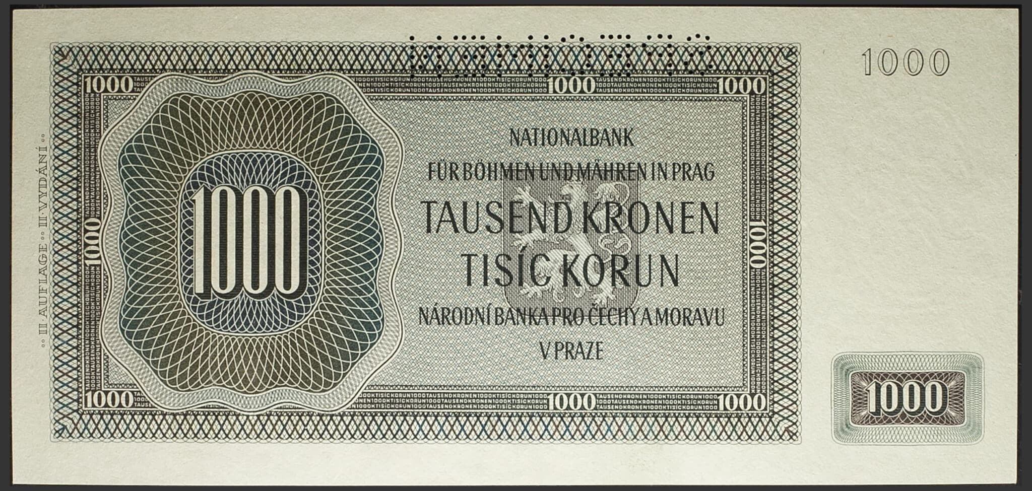 - BOHEMIA AND MORAVIA 1000 korun (SPÉCIMEN) 24 octobre 1942.