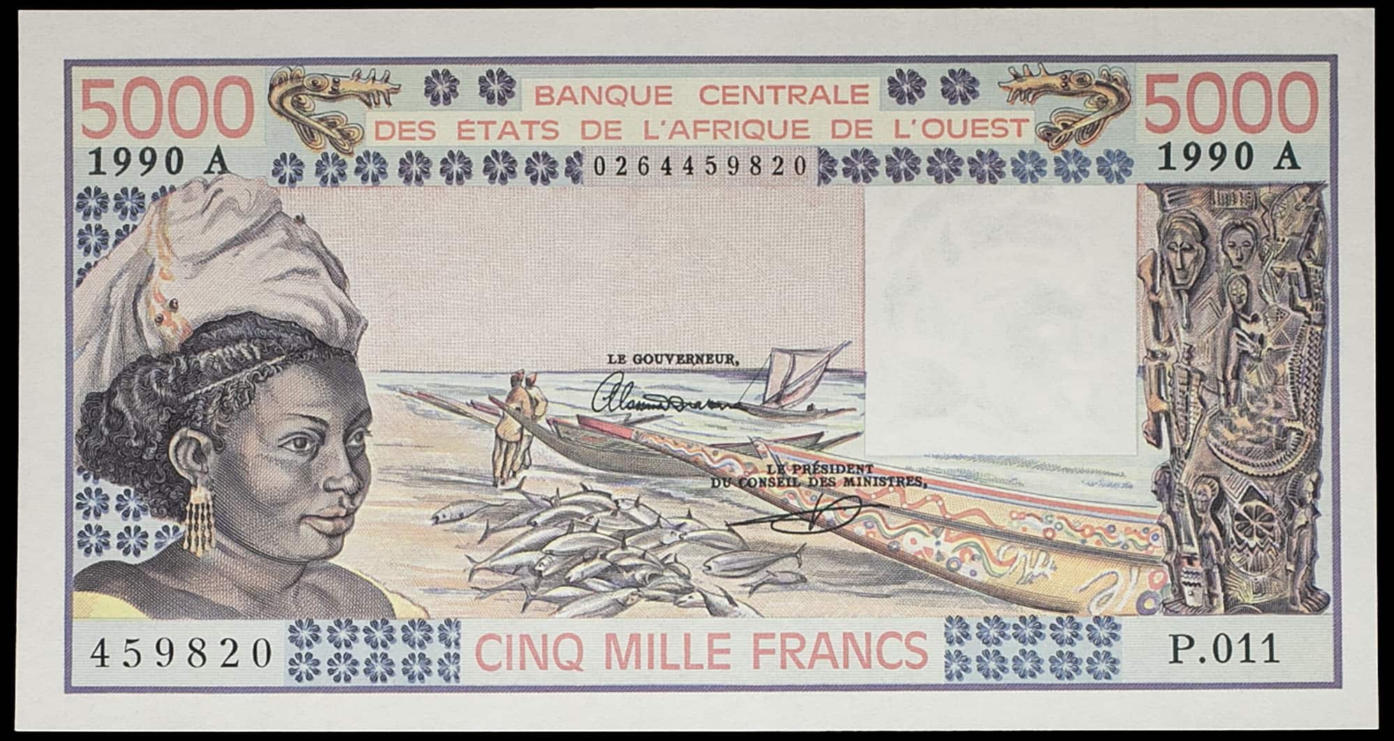 - WEST AFRICAN STATES 5000 francs - A (Côte d’Ivoire) 1990.
