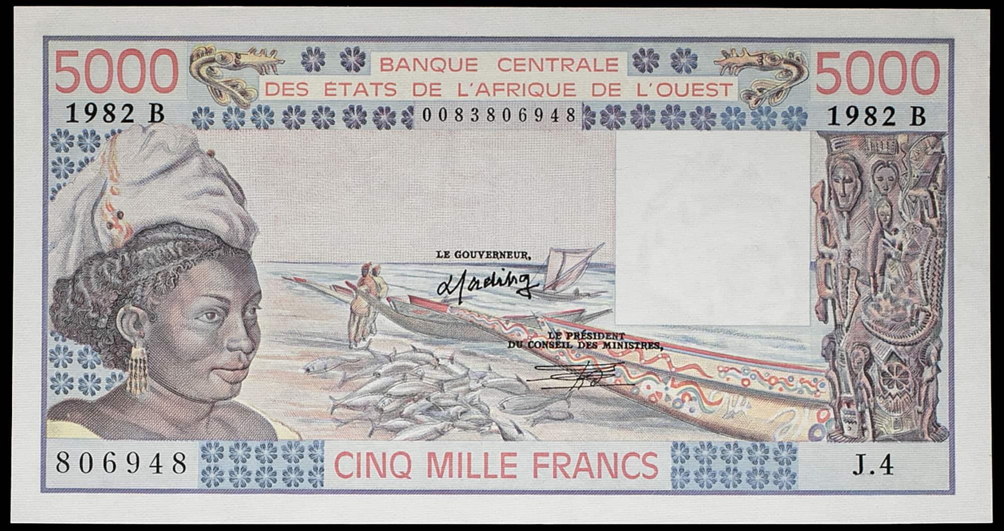- WEST AFRICAN STATES 5000 francs - B (Bénin) 1982.