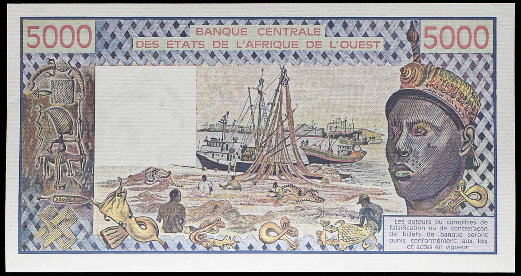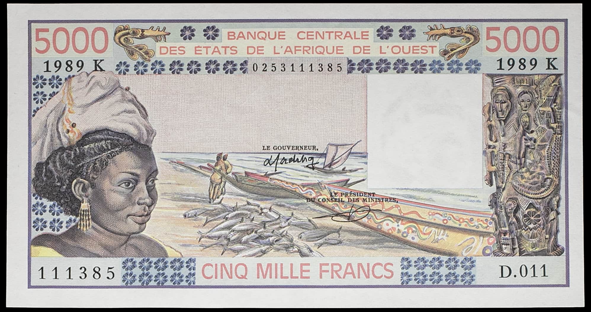 - WEST AFRICAN STATES 5000 francs - K (Sénégal) 1989.