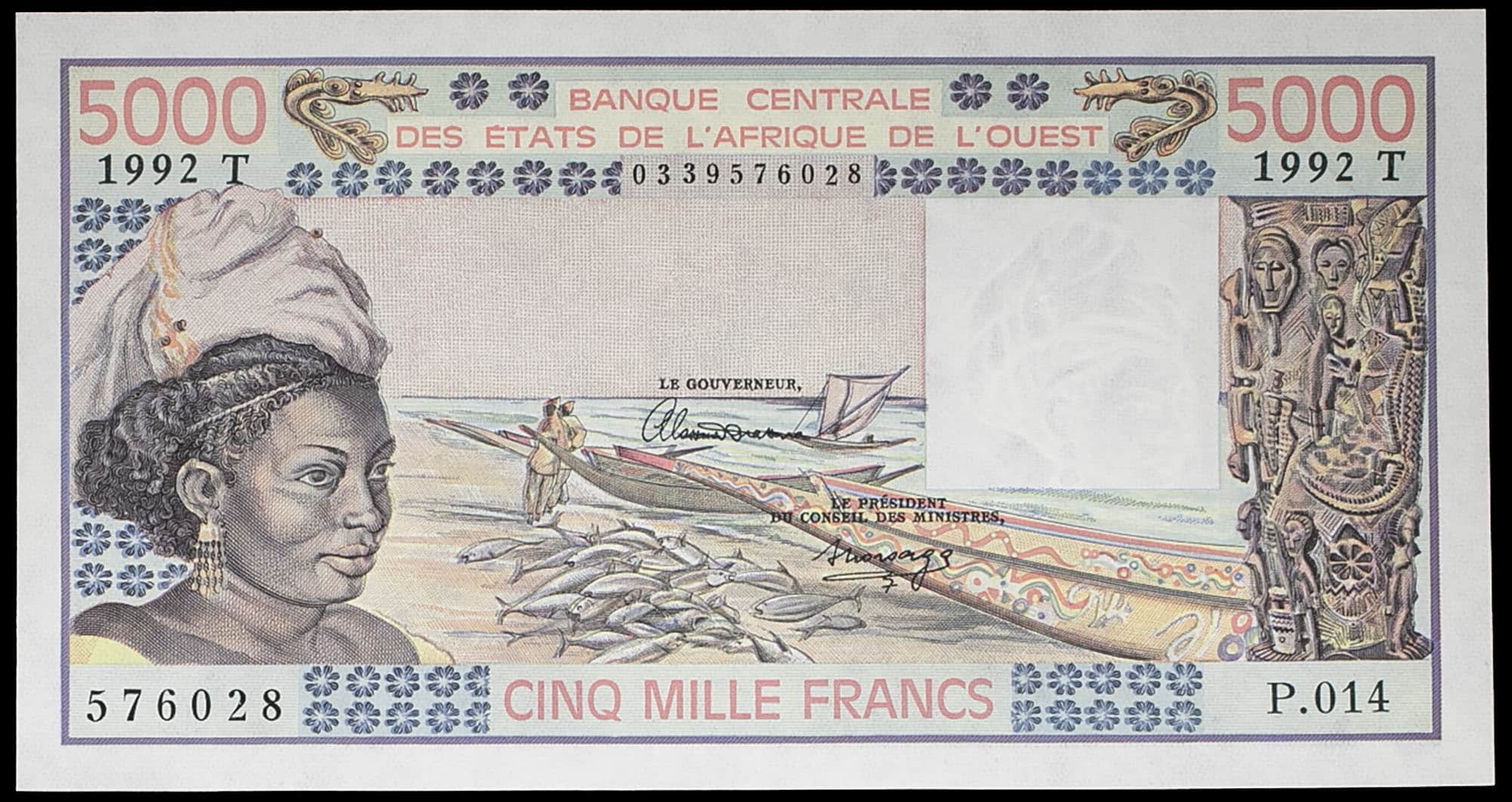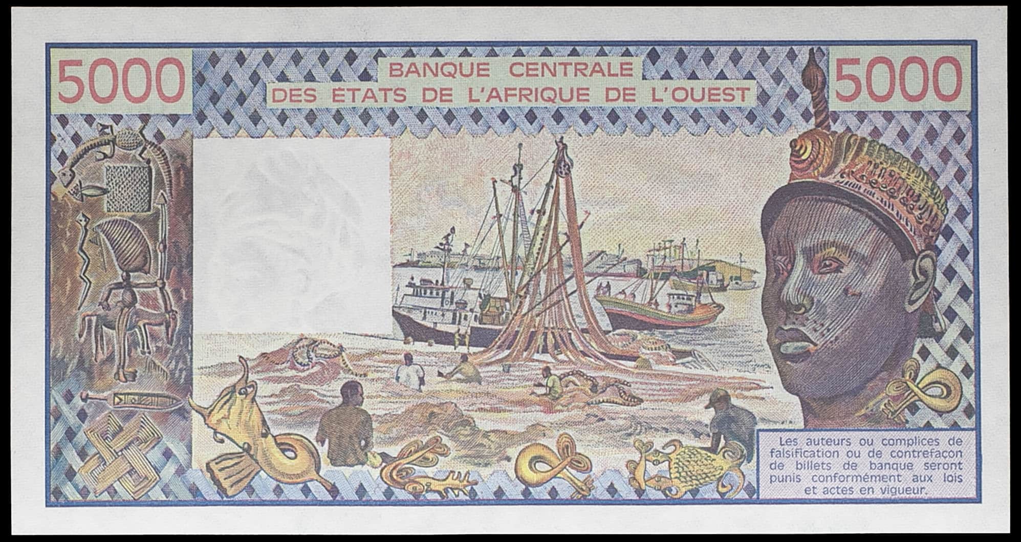 - WEST AFRICAN STATES 5000 francs - T (Togo) 1992.