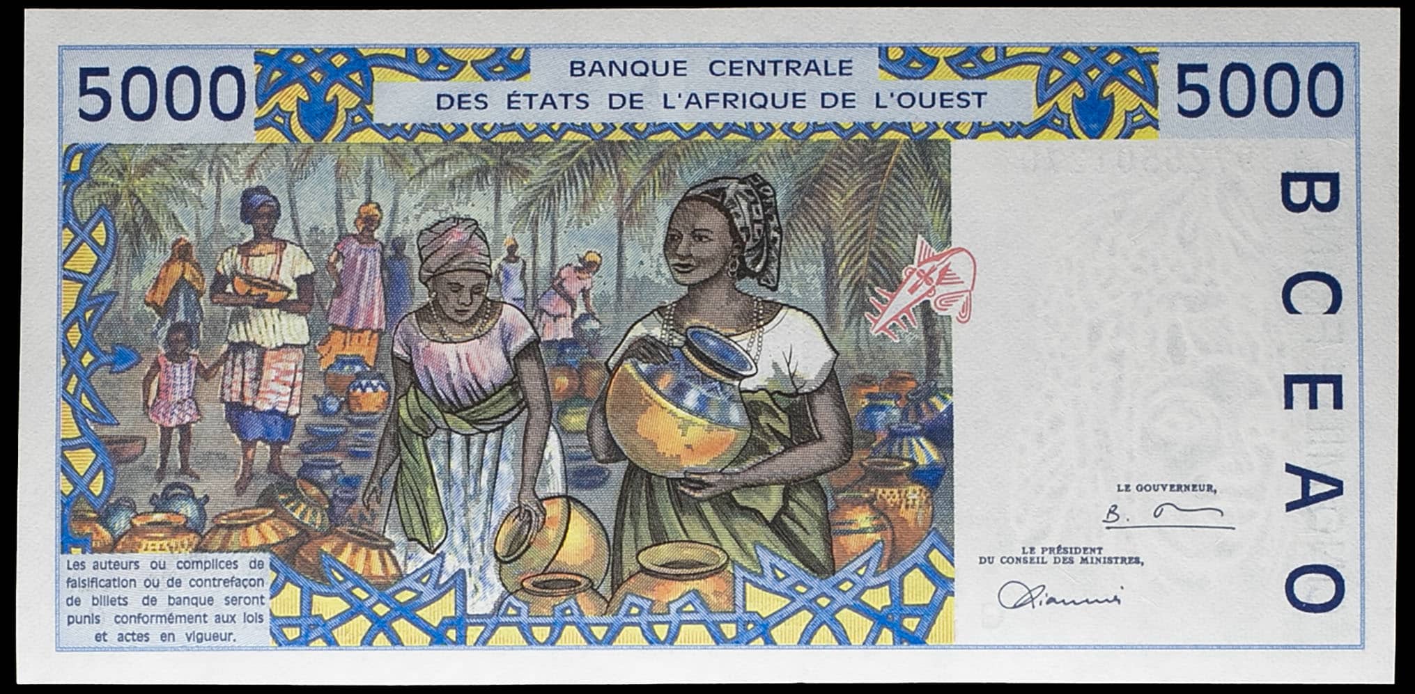 - WEST AFRICAN STATES 5000 francs - C (Burkina Faso) 1997.
