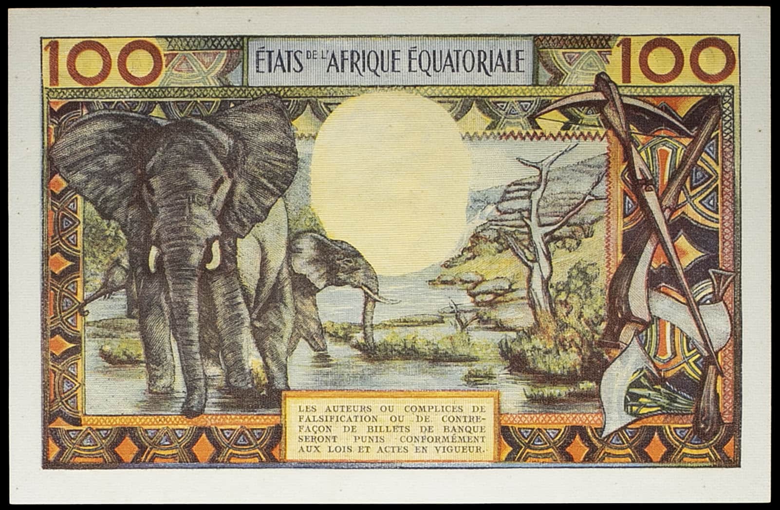 - EQUATORIAL AFRICAN STATES 100 francs - C (Congo) ND (1963).