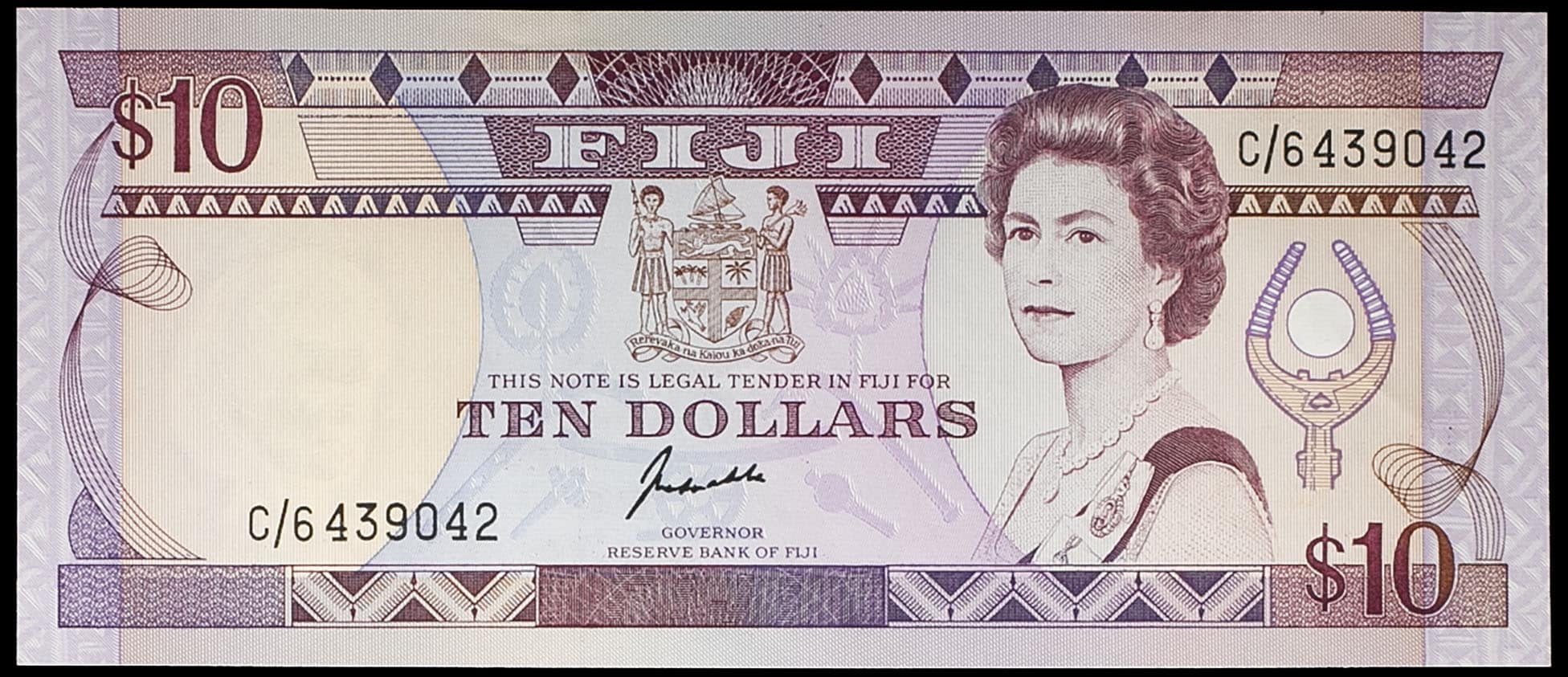 - FIJI 10 dollars avec le portrait de la reine Élisabeth II ND (1989).