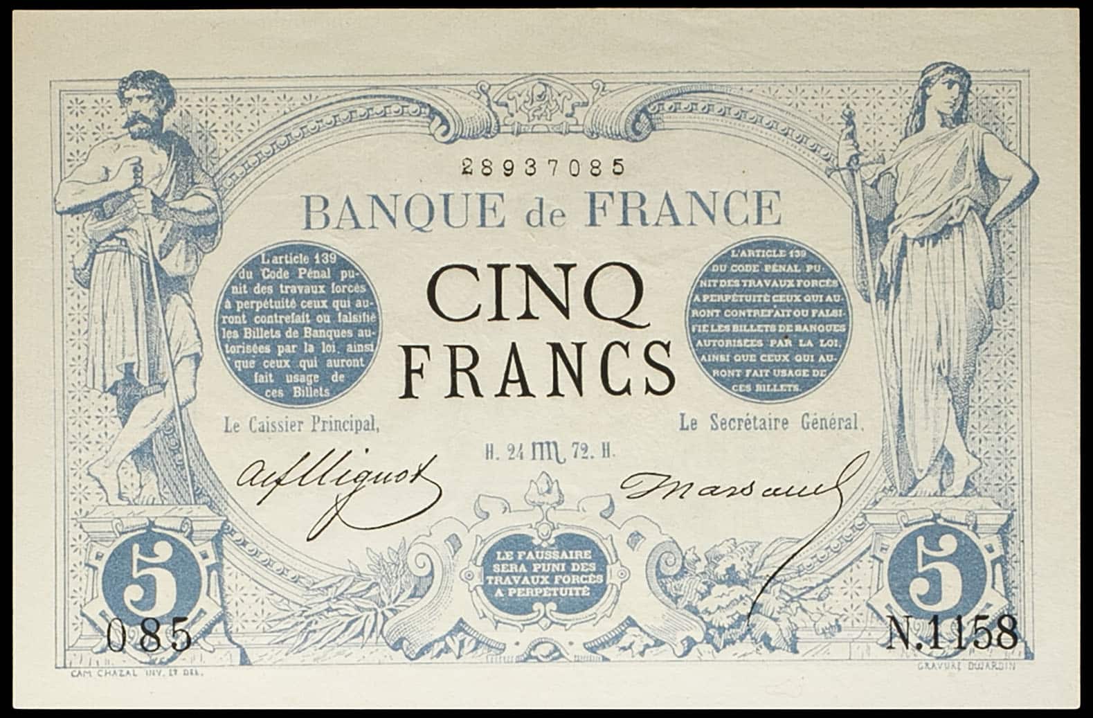 C’est le second plus haut grade ! Alphabet N.1158 - numéro 085. Signatures : Mignot / Marsaud. Ce type est rare et particulièrement recherché dans cet état de conservation ! Seuls cinq exemplaires sont référencés dans une qualité supérieure dans la base de population PMG à ce jour ! (5x PMG 64 : Top Pop). Notons qu’un exemplaire semblable (alphabet N.1158 - numéro 089) dans un état de conservation proche du neuf mais non gradé fut adjugé 4200 EUR avec les frais dans la vente “Papier-monnaie 26” de CGB en octobre 2013.