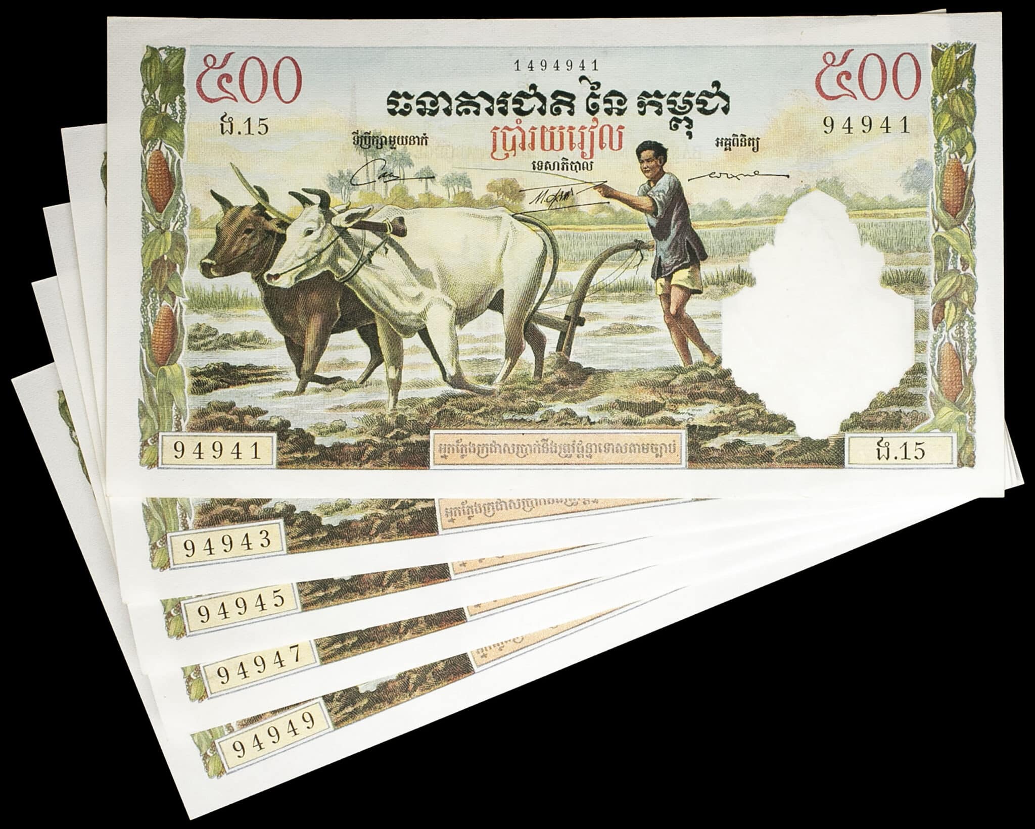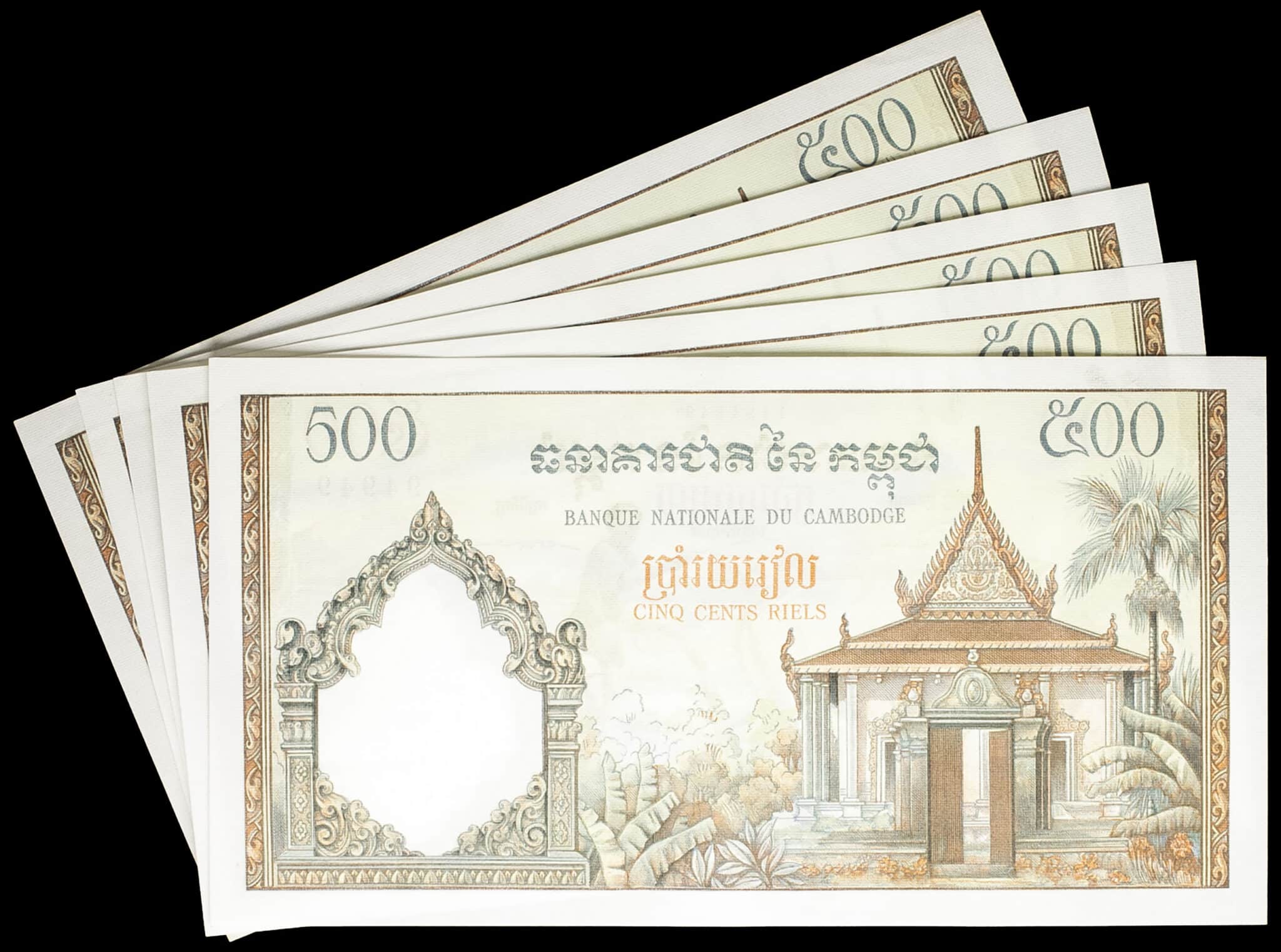 - CAMBODIA Lot (5) - 500 riels avec numéros impairs consécutifs ND (1972).