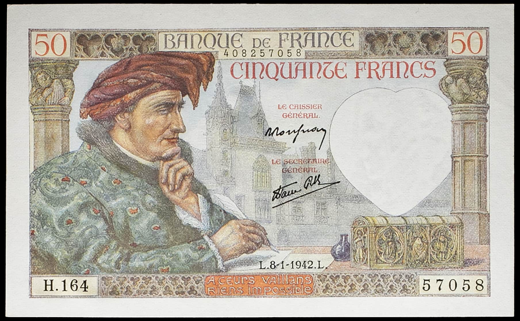 - 50 francs type “Jacques Coeur” 8-1-1942.