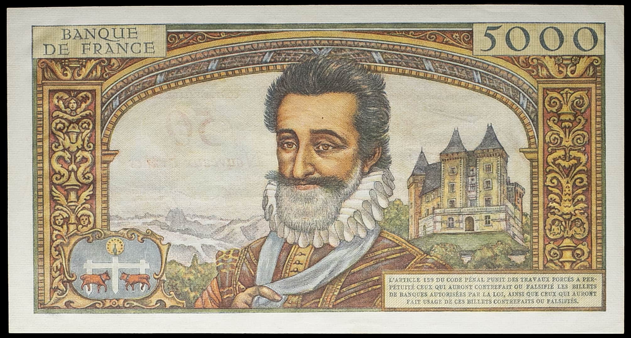 - 50 nouveaux francs surchargé sur 5000 francs type “Henri IV” 30-10-1958.