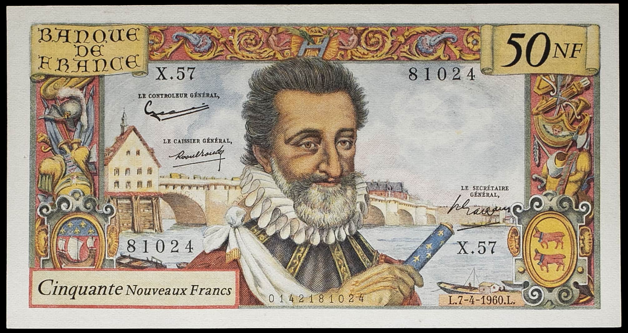 - 50 nouveaux francs type “Henri IV” 7-4-1960.