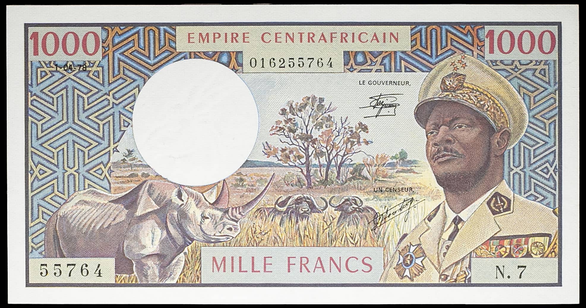 - CENTRAL AFRICAN REPUBLIC 1000 francs avec le portrait de l’empereur Bokassa - Empire centrafricain type modifié 1-04-1978.