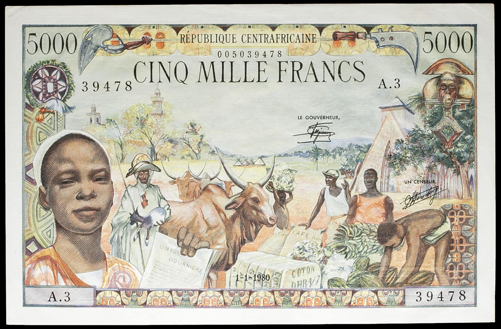 - CENTRAL AFRICAN REPUBLIC 5000 francs, type modifié 1-1-1980.