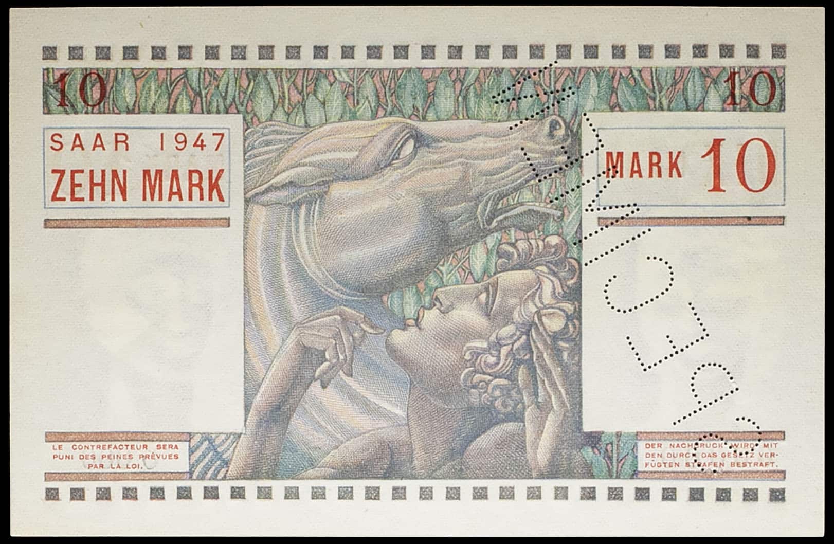 - FRANCE / SAAR PROTECTORATE 10 mark (SPÉCIMEN) 1947.