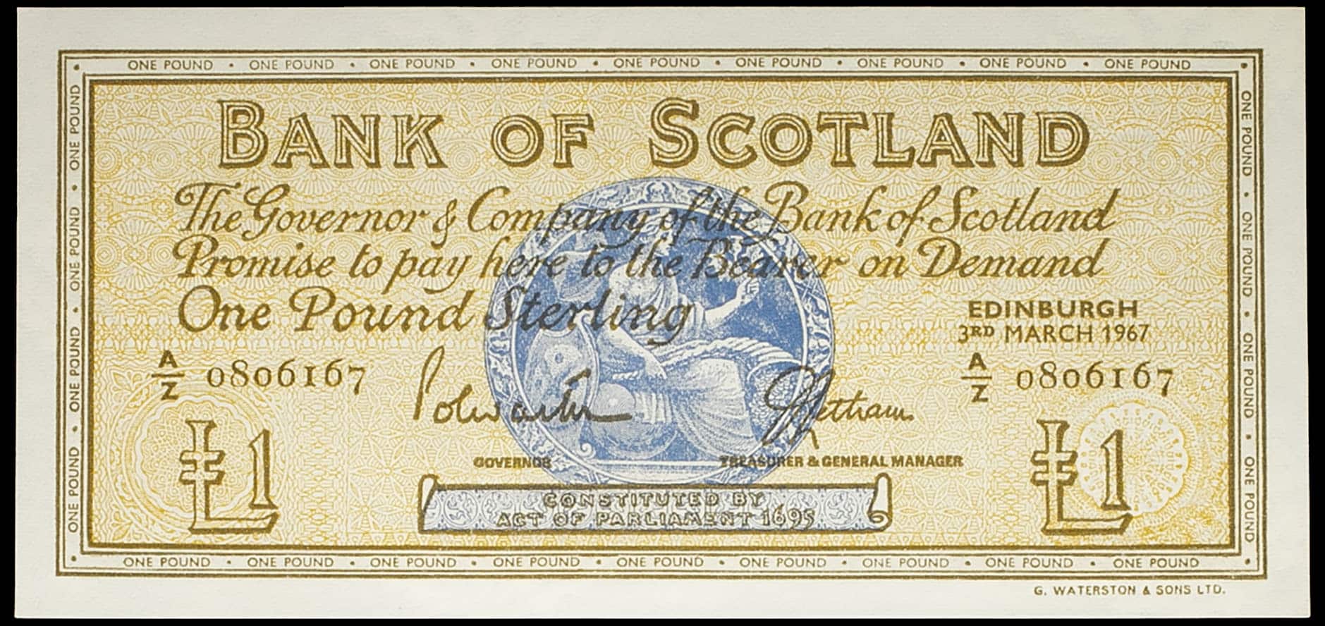 - UNITED KINGDOM Écosse, 1 pound - Bank of Scotland 3 mars 1967.