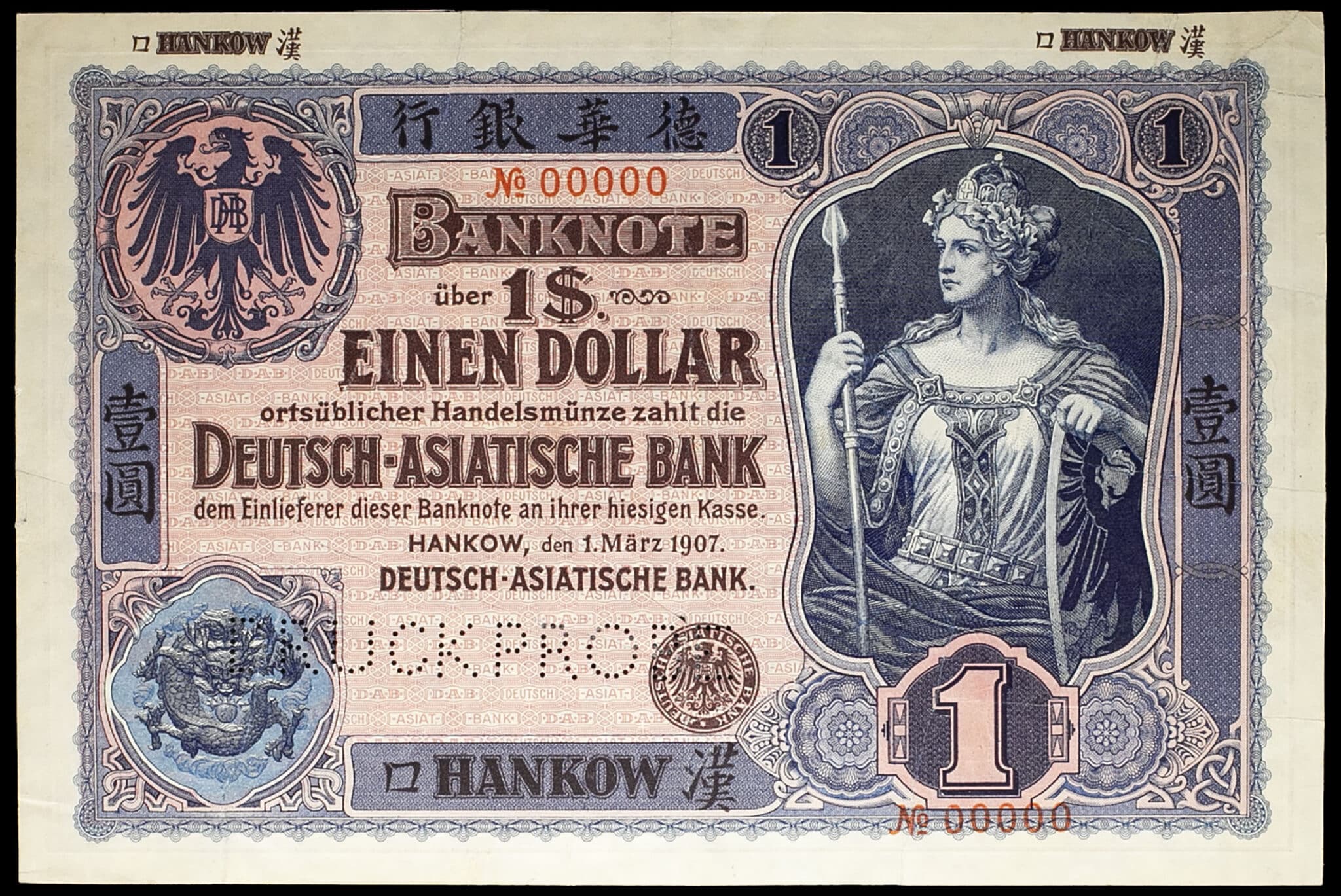 - CHINA 1 dollar (SPÉCIMEN) - Deutsch-Asiatische Bank, Hankow 1er mars 1907.