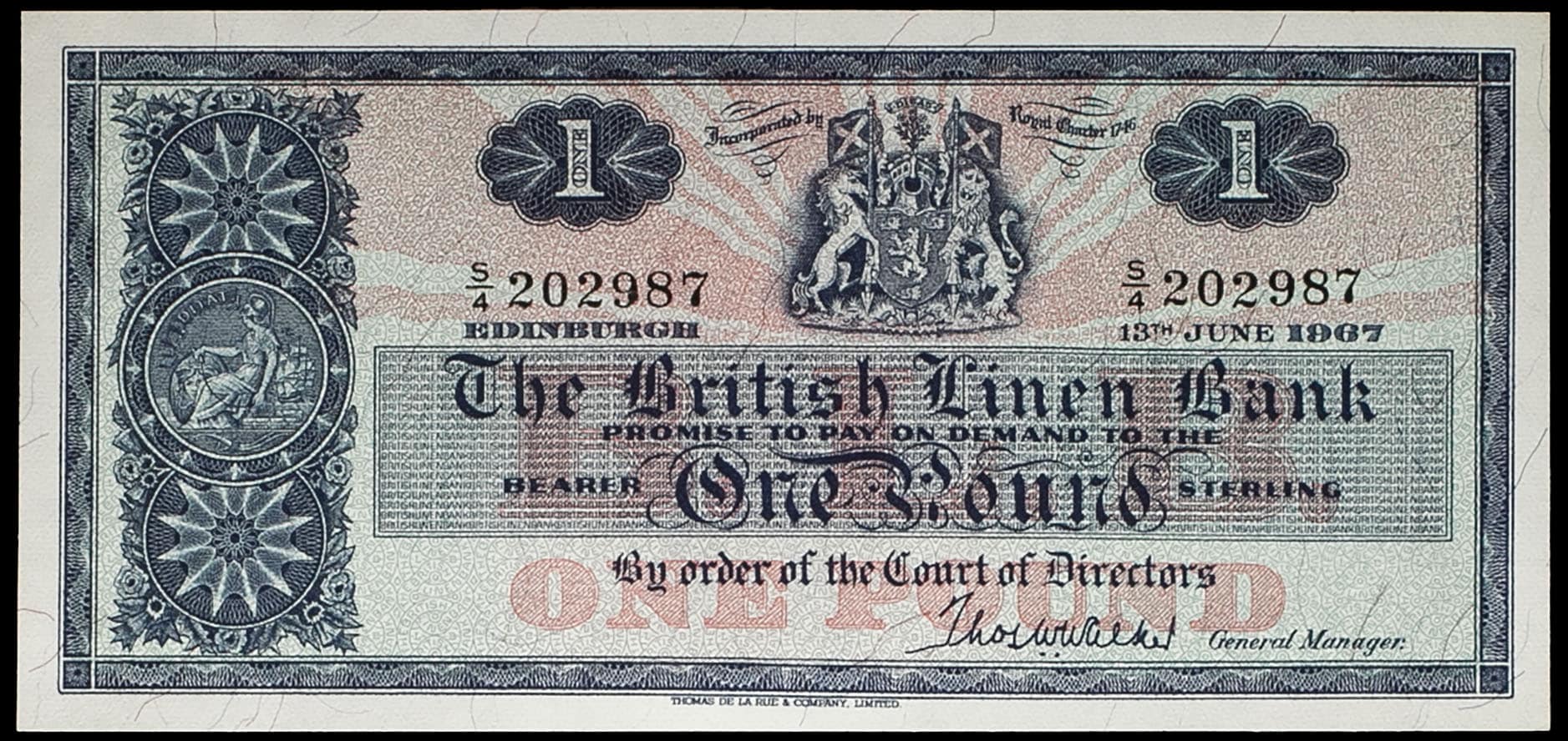 - UNITED KINGDOM Écosse, 1 pound - British Linen Bank 13 juin 1967.