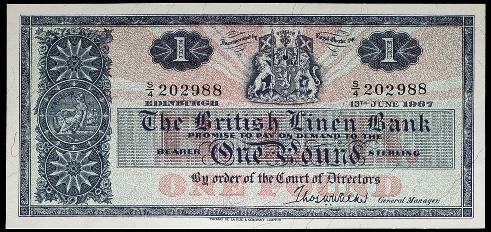 - UNITED KINGDOM Écosse, 1 pound - British Linen Bank 13 juin 1967.