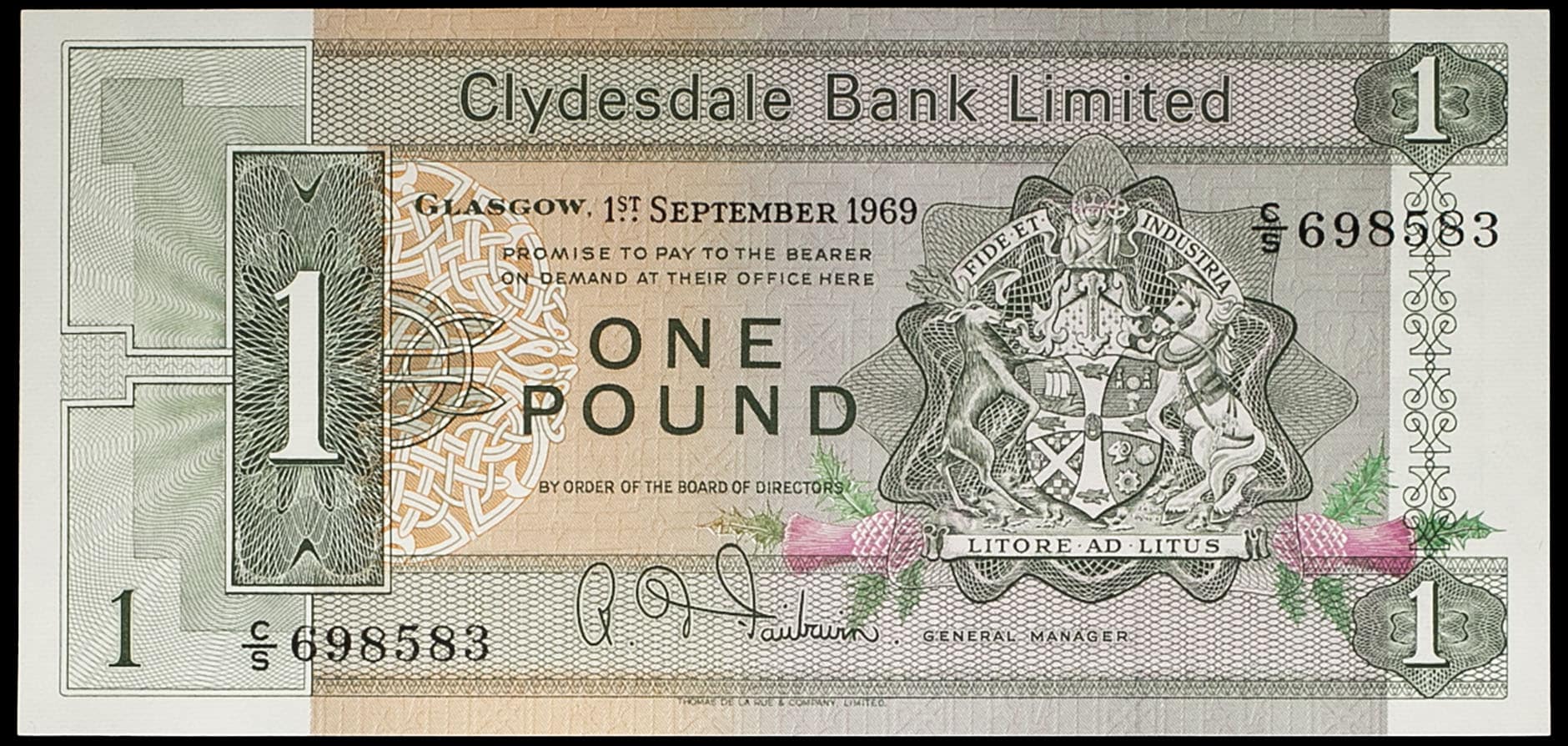 - UNITED KINGDOM Écosse, 1 pound - Clydesdale Bank 1er septembre 1969.