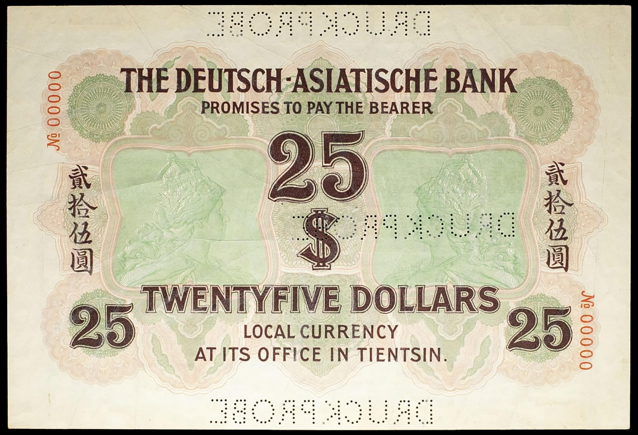 - CHINA 25 dollars (SPÉCIMEN) - Deutsch-Asiatische Bank, Tientsin 1er mars 1907.