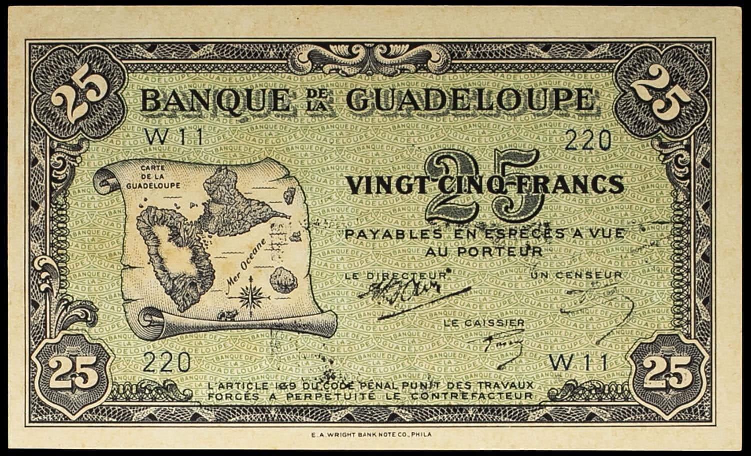 - 25 francs impression US type “carte” ND (1945).