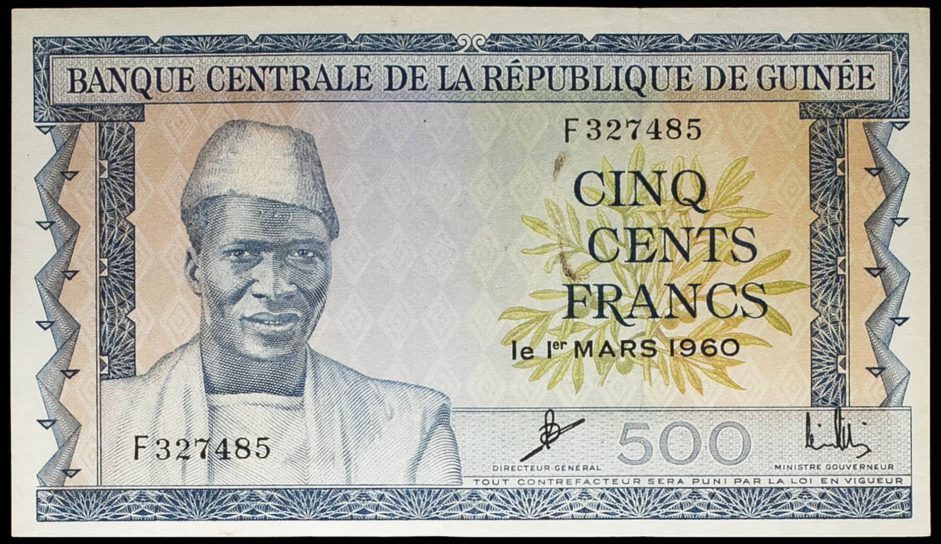 - GUINEA 500 francs avec le portrait du président Ahmed Sekou Touré 1er mars 1960.