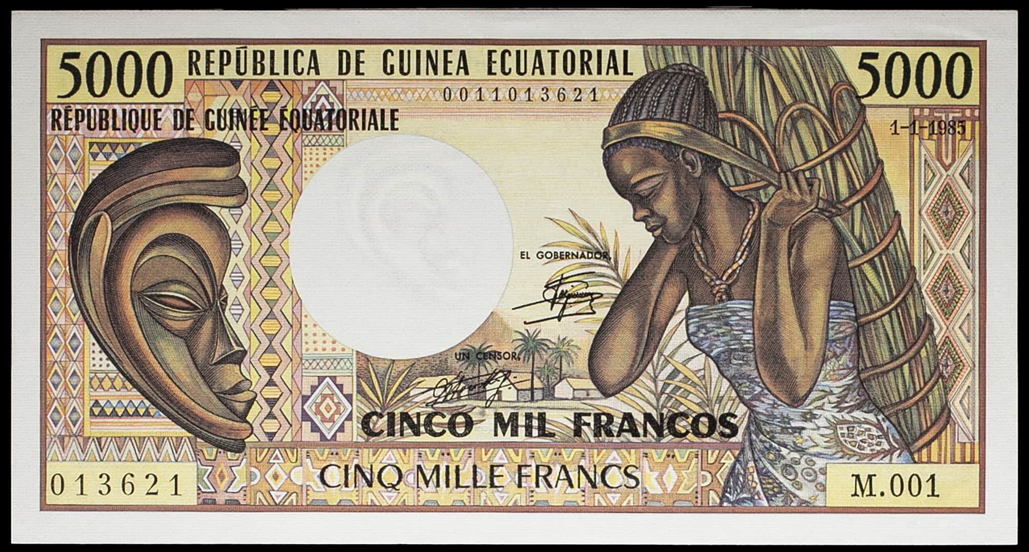 - EQUATORIAL GUINEA 5000 francs 1-1-1985.