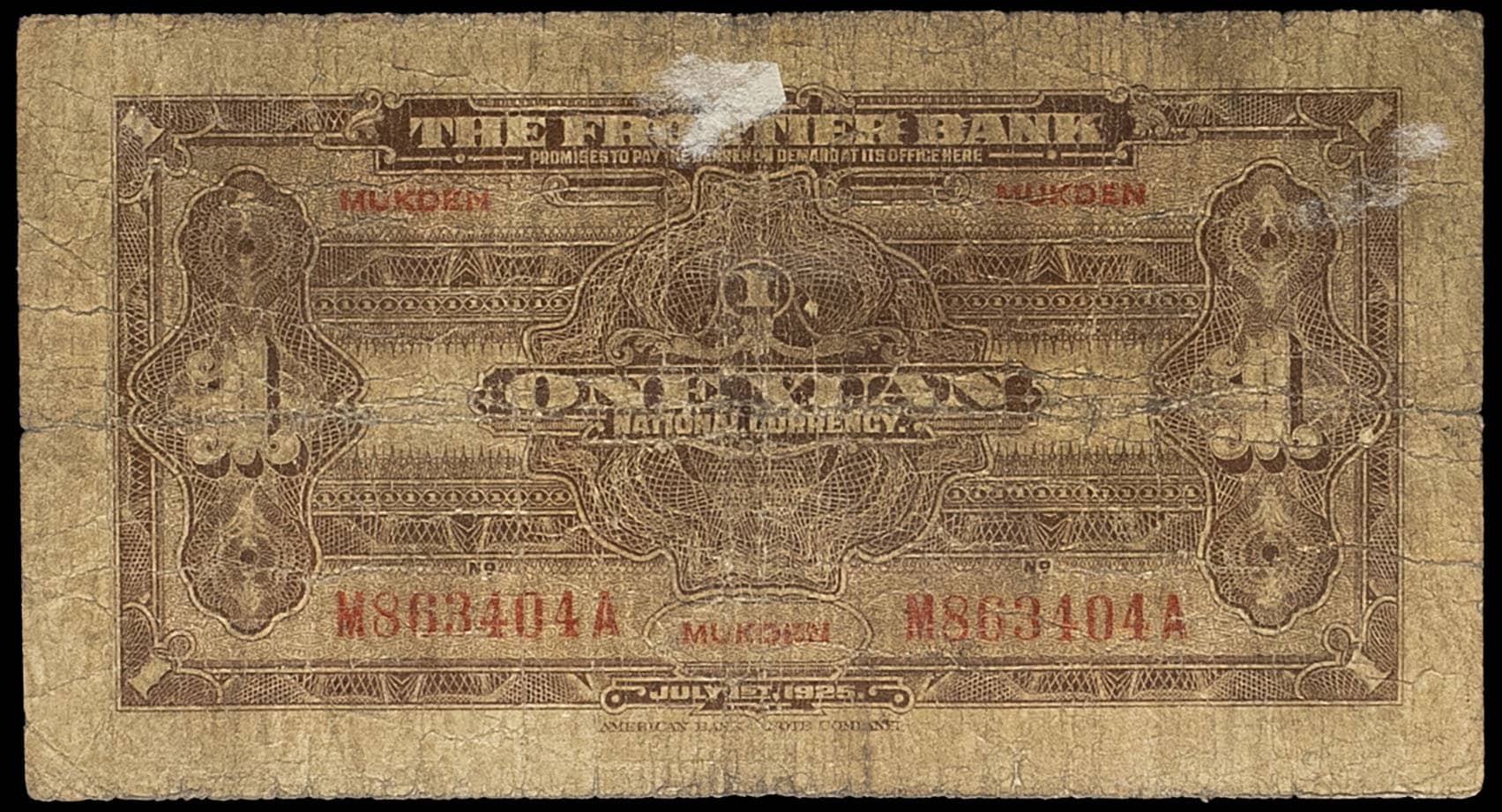 - CHINA 1 yuan - The Frontier Bank, Mukden 1er juillet 1925.