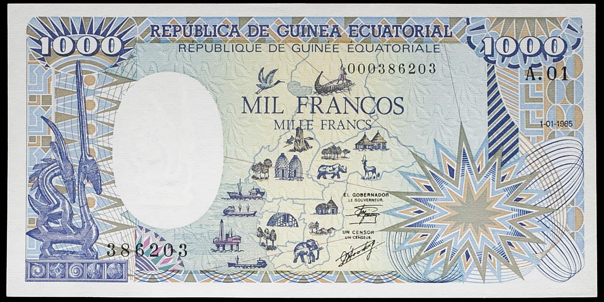 - EQUATORIAL GUINEA 1000 francs 1-01-1985.
