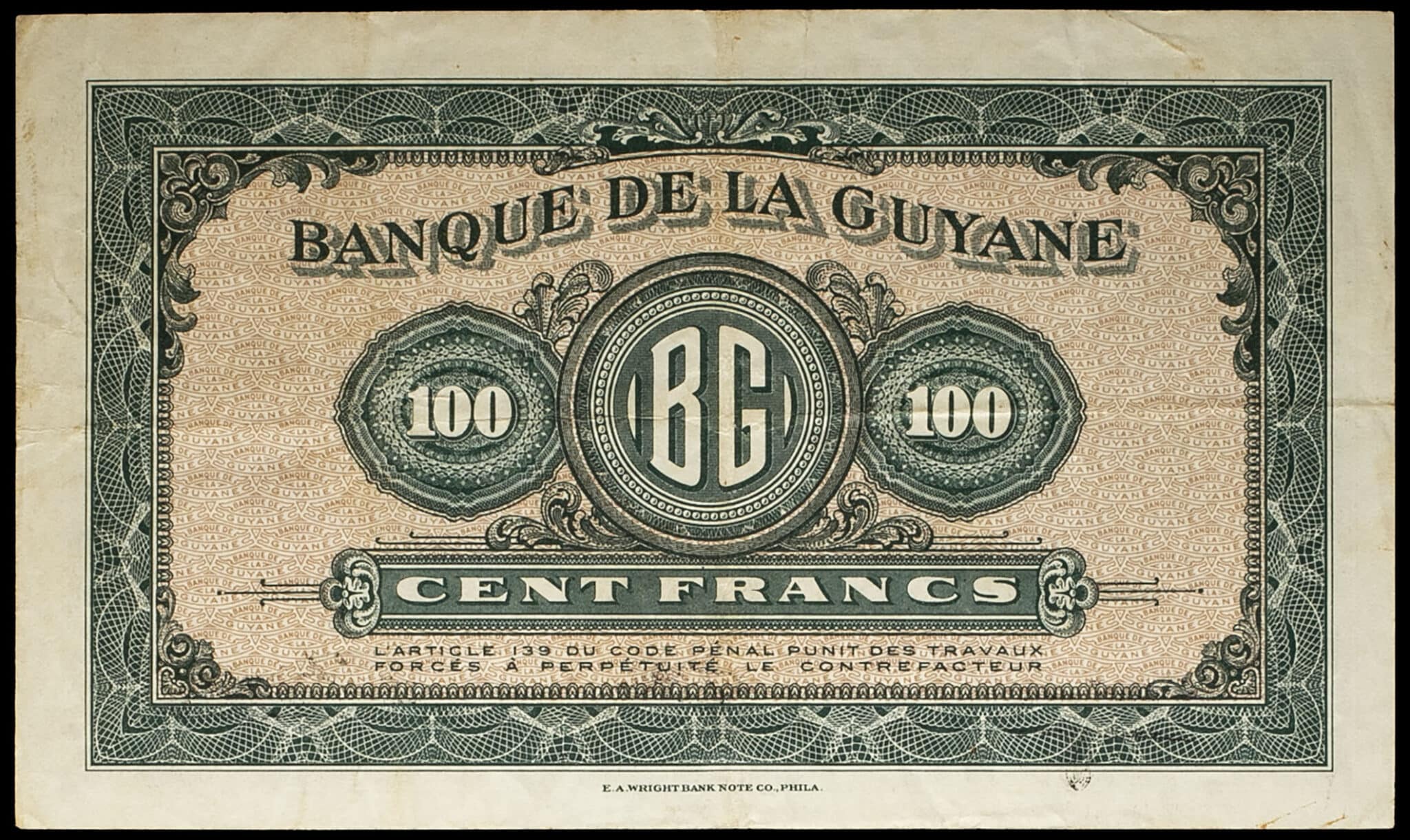- FRENCH GUIANA 100 francs impression US type “carte” ND (1942).