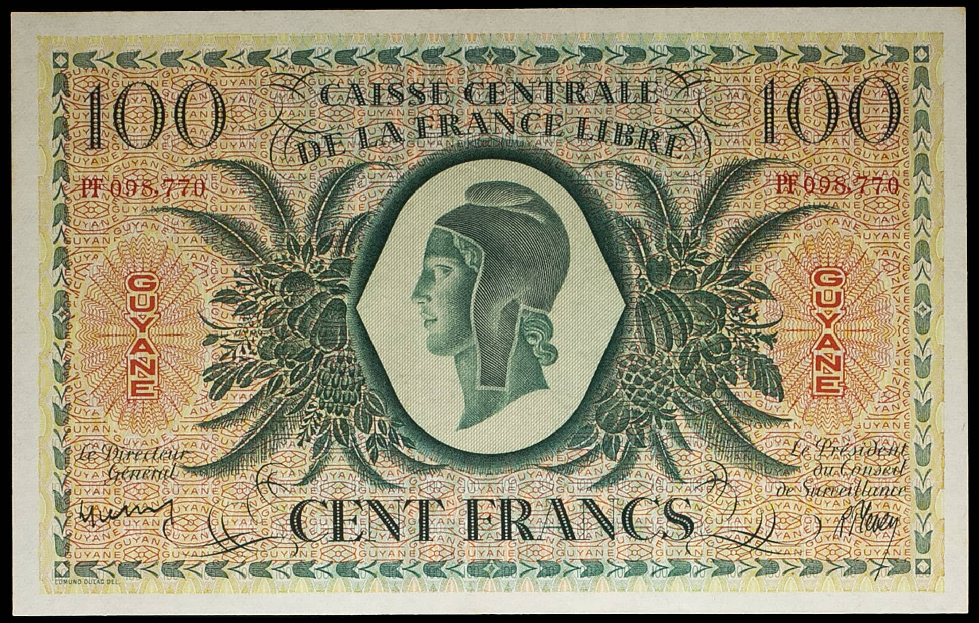- FRENCH GUIANA 100 francs type “Marianne” dit “Edmond Dulac” - Caisse centrale de la France libre 2 février 1941 (31 mai 1946).