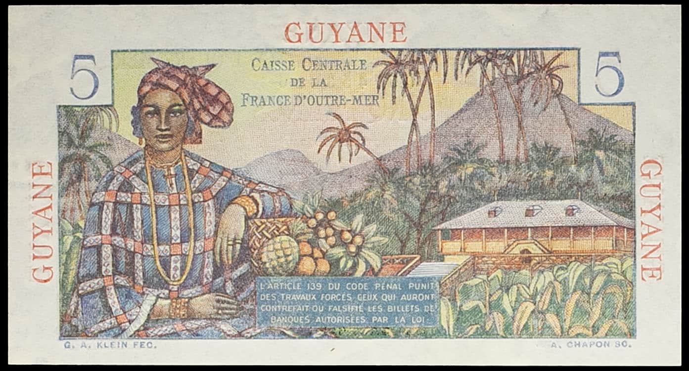 - FRENCH GUIANA 5 francs type “Bougainville” ND (1946).