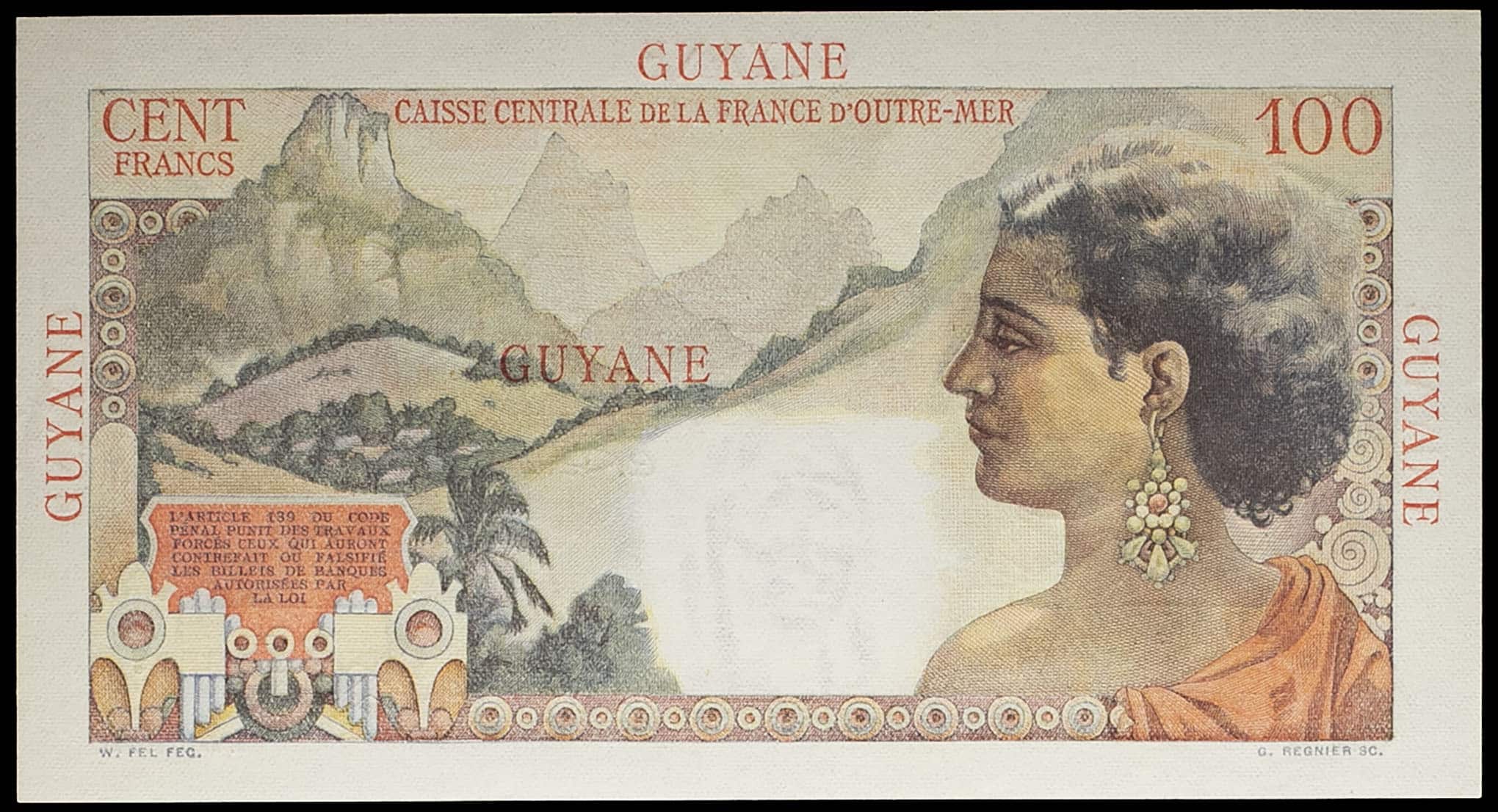 - FRENCH GUIANA 100 francs type “La Bourdonnais” ND (1946).