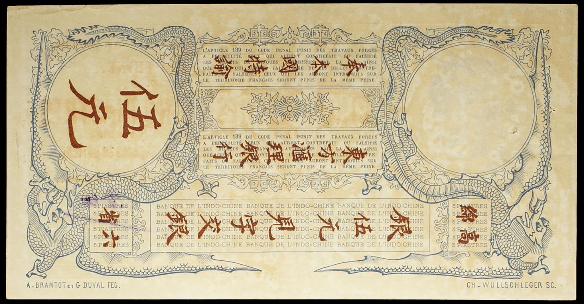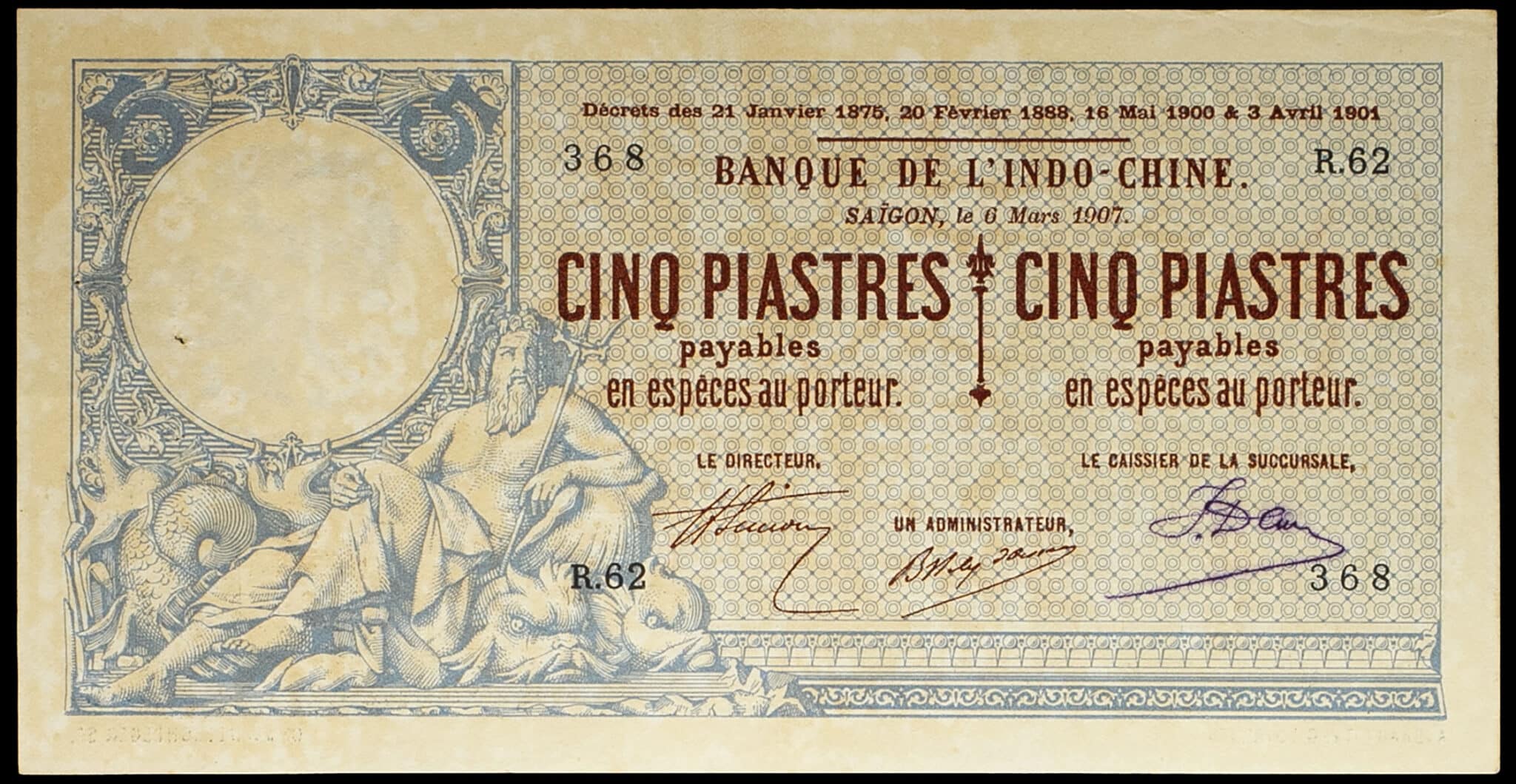 - FRENCH INDOCHINA 5 piastres type “bleu” - Saïgon 6 mars 1907.