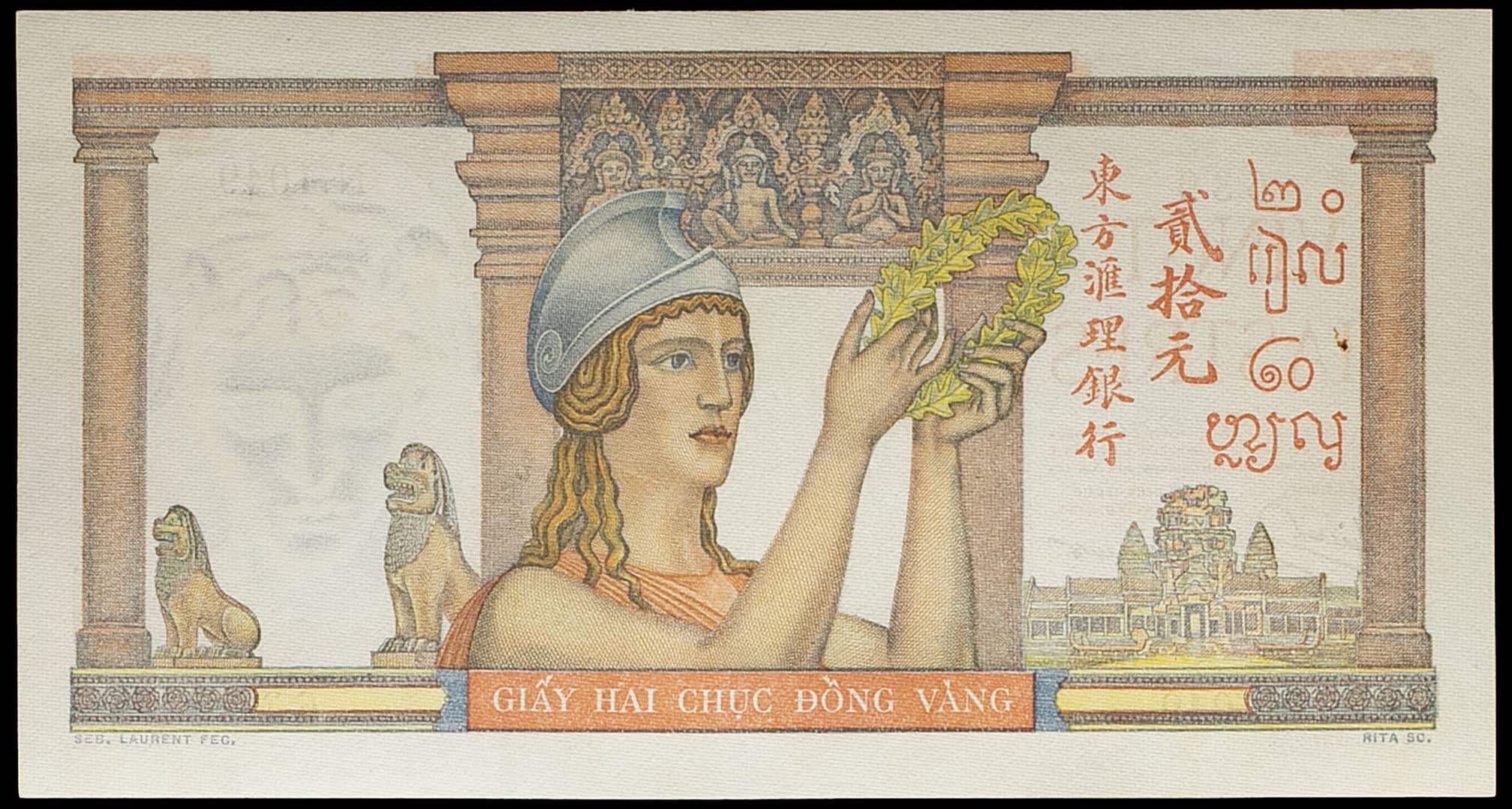 - FRENCH INDOCHINA 20 piastres, à-plats rouge ND (1945).