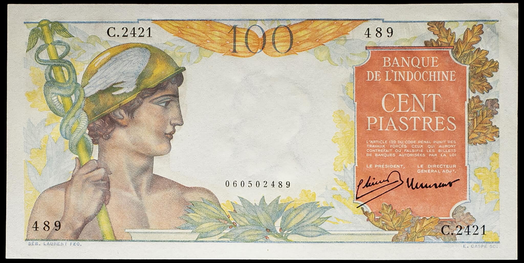 - FRENCH INDOCHINA 100 piastres type “Mercure” modifié ND (1947).