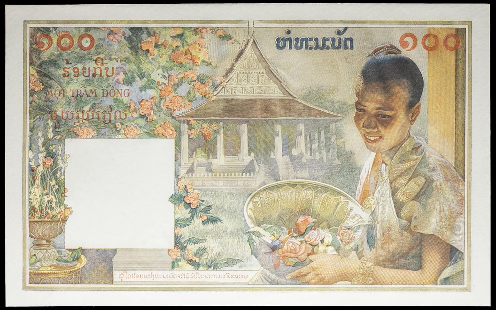- FRENCH INDOCHINA Épreuve de 100 piastres / kip (Laos) type “jeunes femmes de Saïgon” (PROOF) - Institut d’Émission des États du Cambodge, du Laos et du Viet-Nam ND (1954).