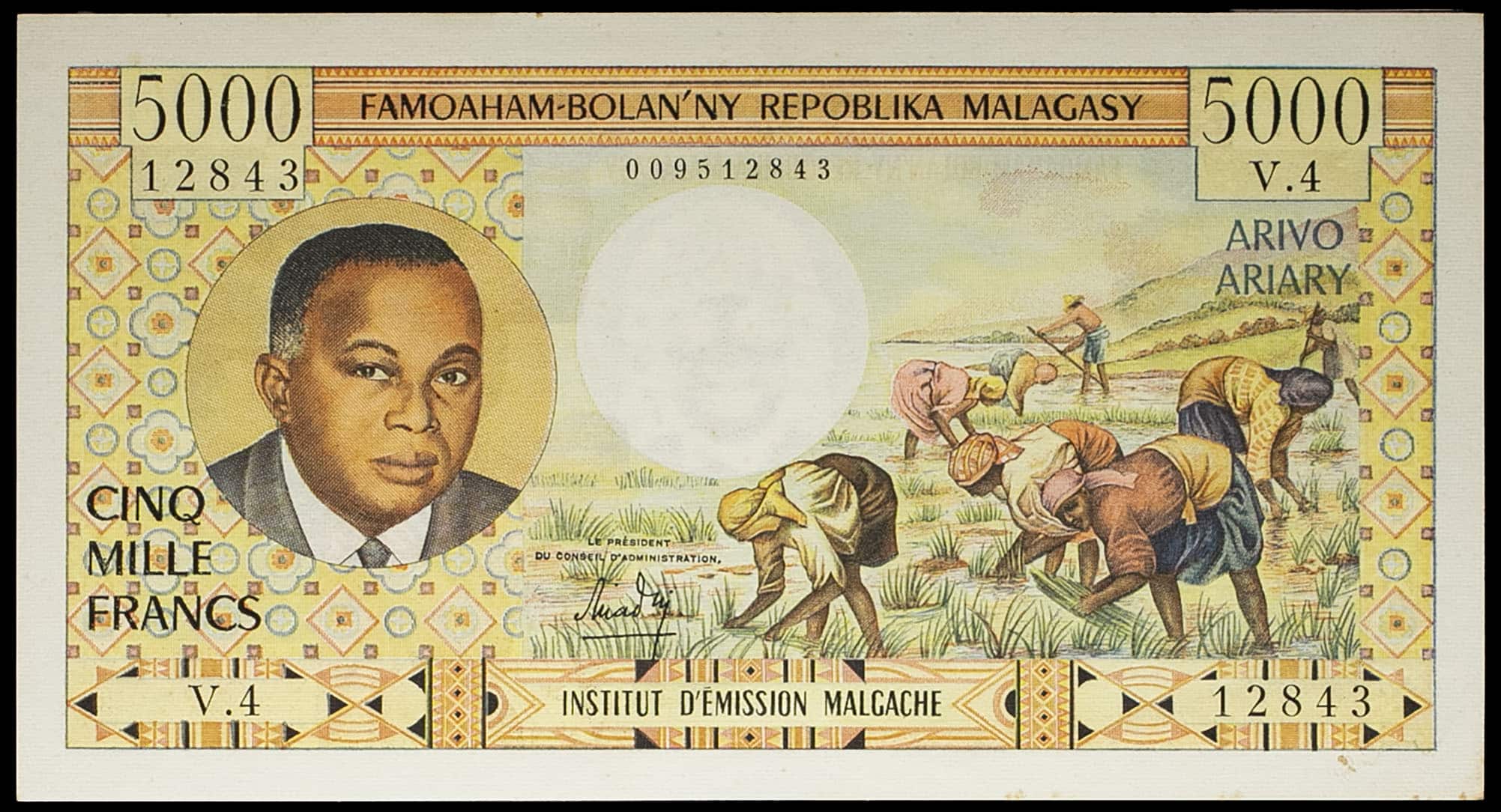 - 5000 francs - 1000 ariary avec le portrait du président Philibert Tsiranana ND (1966).