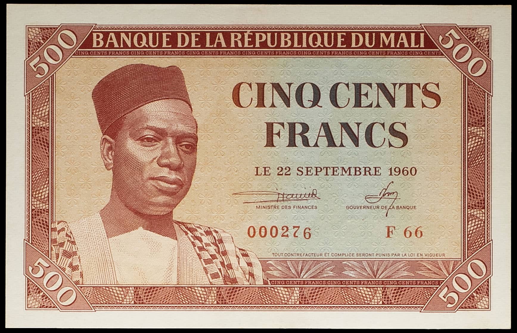 - 500 francs avec le portrait du président Mobido Keita 22 septembre 1960.