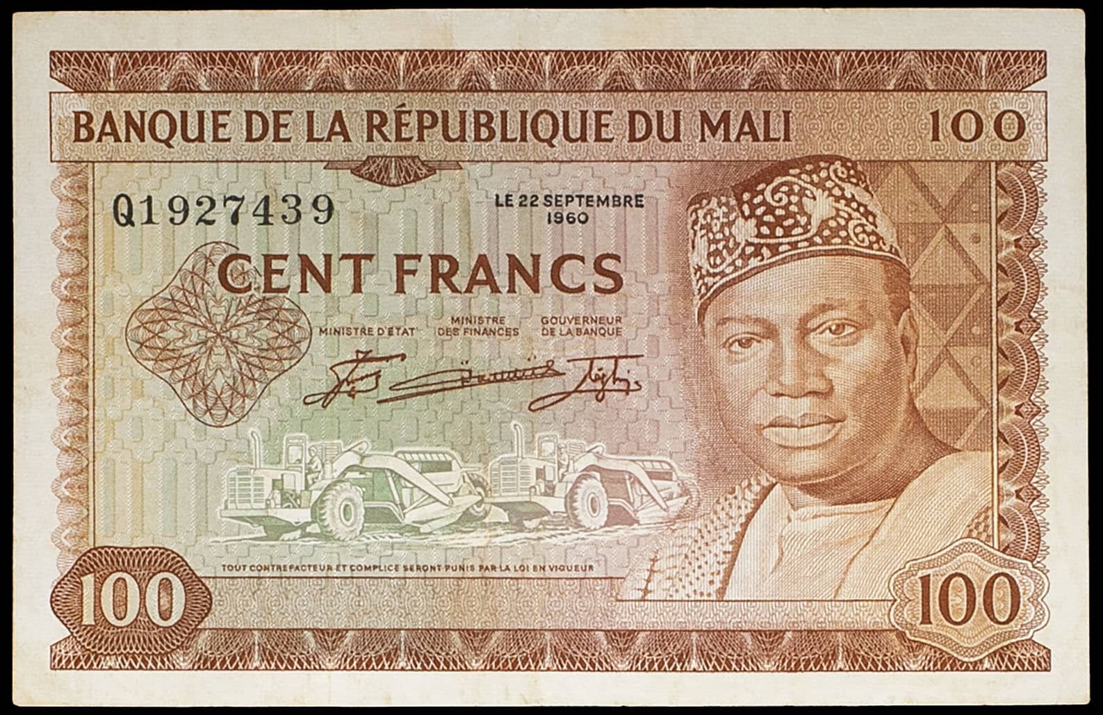 - 100 francs avec le portrait du président Mobido Keita, deuxième émission 22 septembre 1960.