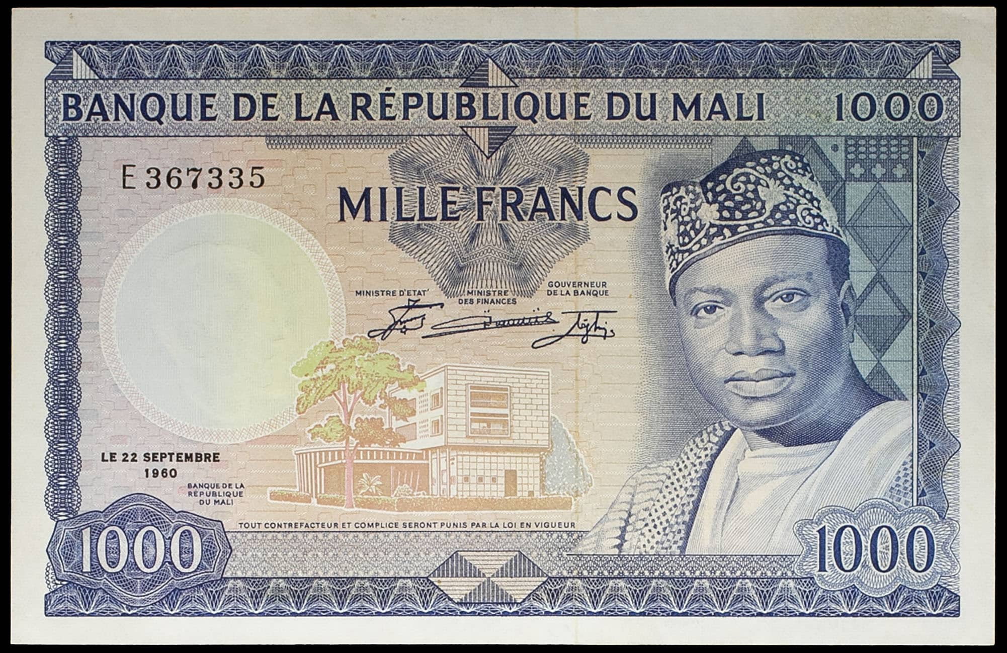 - 1000 francs avec le portrait du président Mobido Keita, deuxième émission 22 septembre 1960.