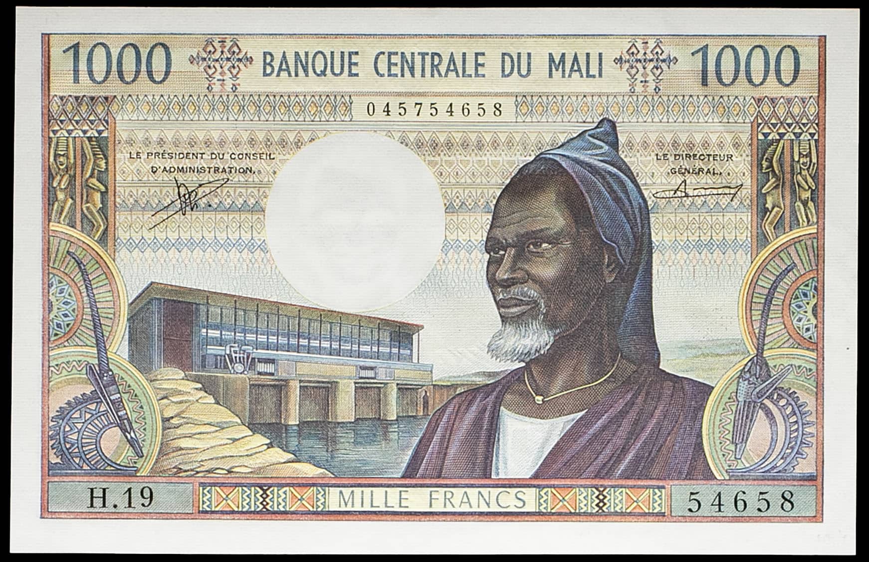 - 1000 francs type “centrale hydro-éléctrique de Sotuba” ND (1972).